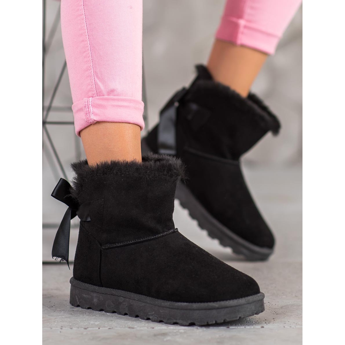 SHELOVET Warm Mukluki With Bow, noir - L'élégance combinée à la fonctionnalité