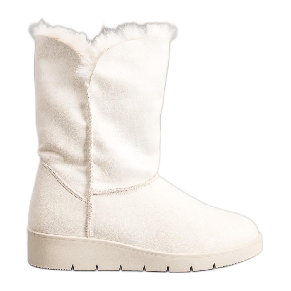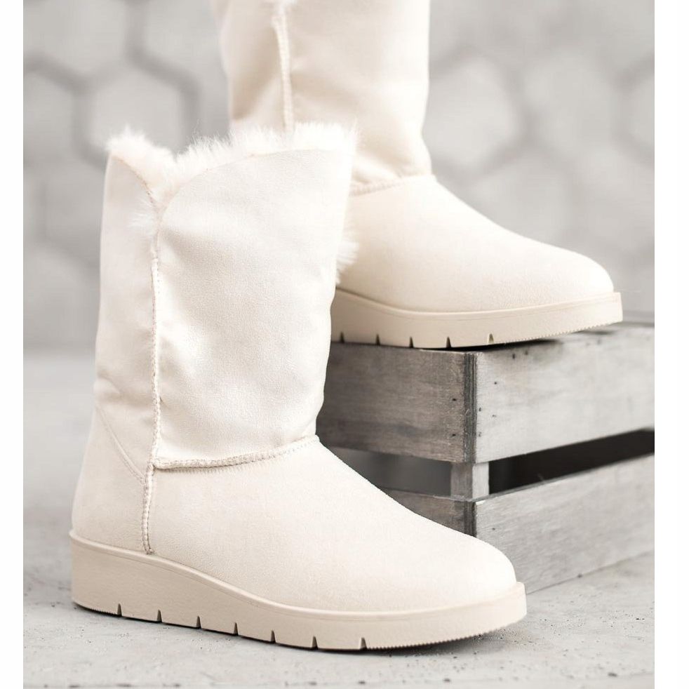 Les mukluks Kylie Warm en blanc sont synonymes de minimalisme de la mode, qui s'inscrit dans les dernières tendances. Grâce à la largeur supérieure de 34 à 36 cm et à la possibilité de relever la tige, vous pourrez facilement les ajuster à votre silhouette. À son tour, la semelle synthétique avec bande de roulement garantit stabilité et traction sur diverses surfaces.