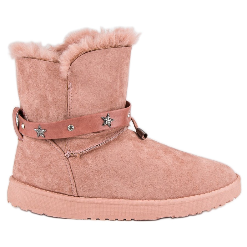 Fabriqués en daim écologique, les mukluks hauts arrivent au-dessus des chevilles, protégeant les jambes du froid. Un bracelet rose accrocheur en cuir écologique et de subtils strass leur confèrent un caractère unique. La conception à enfiler facilite l'enfilage et le retrait des chaussures, et la plateforme de 2,5 cm de hauteur assure le confort à chaque pas.