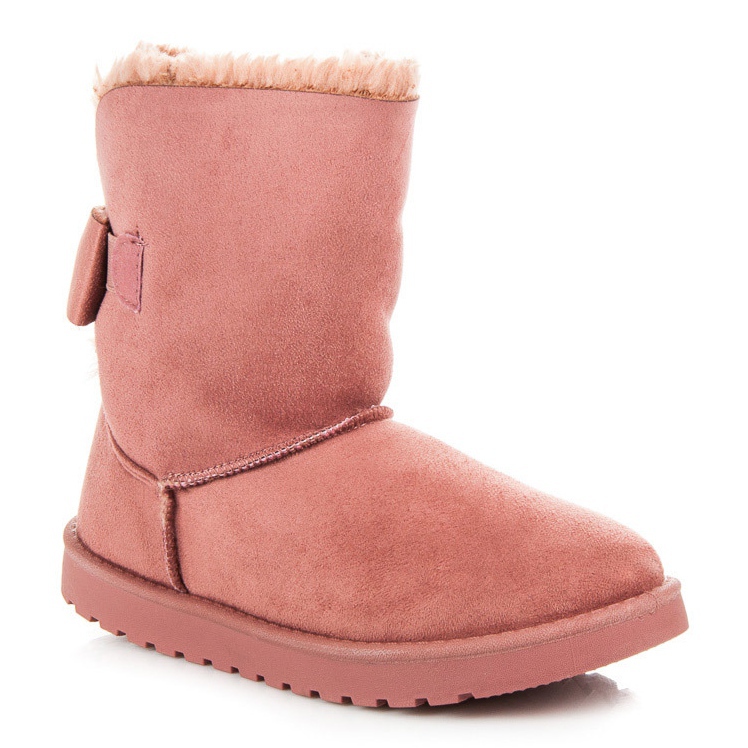 Grâce à une plateforme de 3 cm de haut et une semelle en plastique avec bande de roulement, les mukluks sont non seulement élégants, mais offrent également stabilité et bonne adhérence. Le rose pastel s'inscrit dans la tendance actuelle, et un nœud délicat ajoute un caractère charmant à l'ensemble.