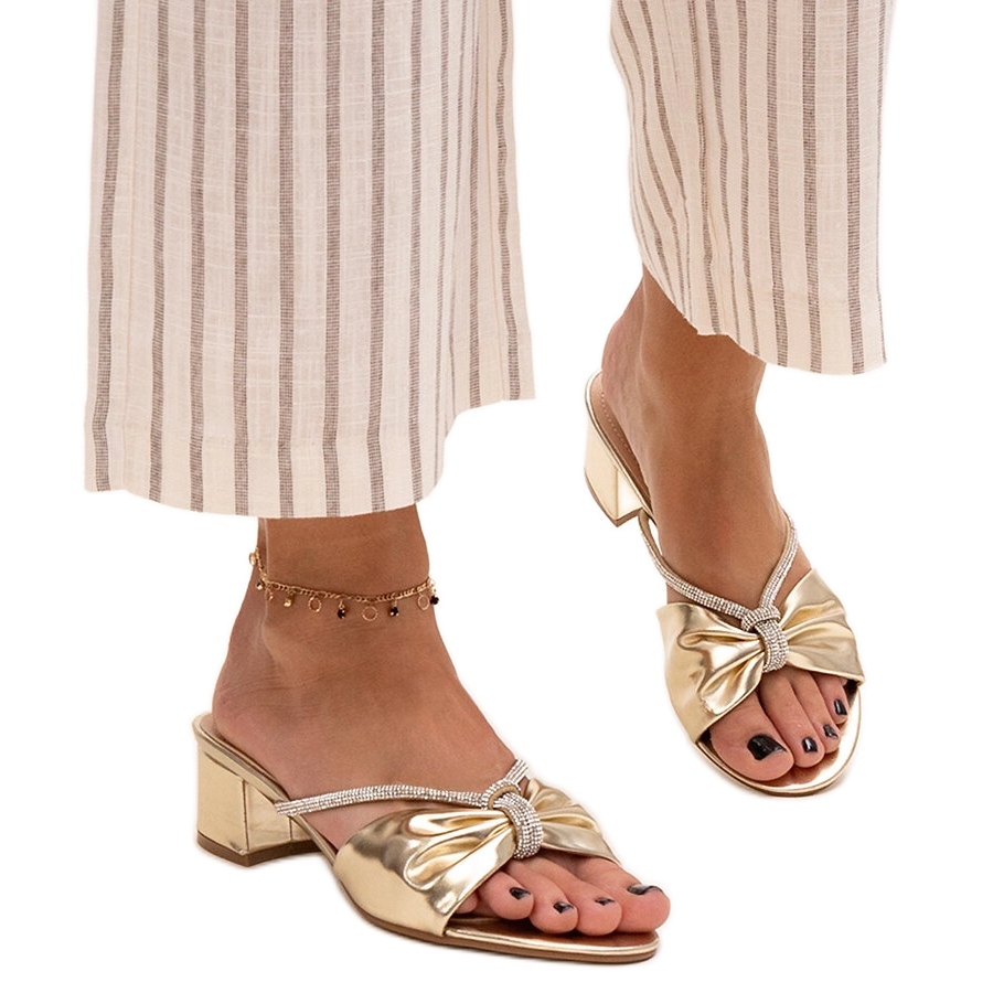 Mules à talons hauts ornées de zircons Anbrani doré