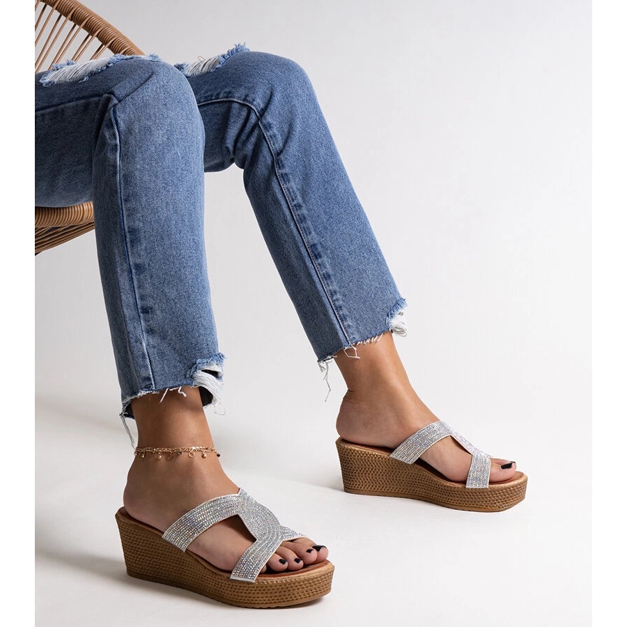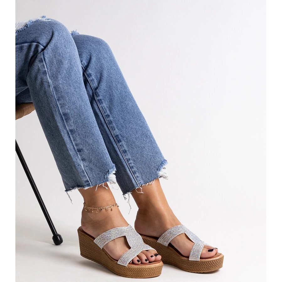 Le coin de 7 cm de haut offre une stabilité supplémentaire, ce qui les rend adaptés à chaque femme qui veut ajouter un peu de croissance, sans renoncer au confort. La couleur argentée des volets va parfaitement avec diverses stylisations, du décontracté à plus élégant, devenant un ajout universel à chaque garde-robe d'été.