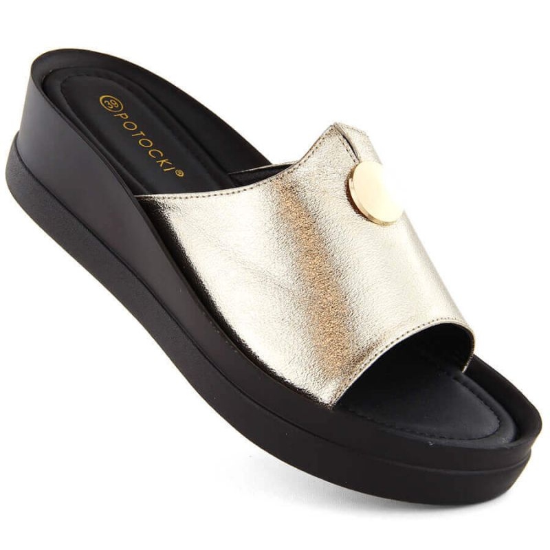 Les coins de Potocki dans WOL236 dans une teinte dorée sont le choix parfait pour les jours d'été, combinant le confort avec l'élégance. Ces tongs de mode, dédiés aux femmes, se distinguent par une structure extérieure qui garantit la respirabilité et le confort de porter même les jours chauds.