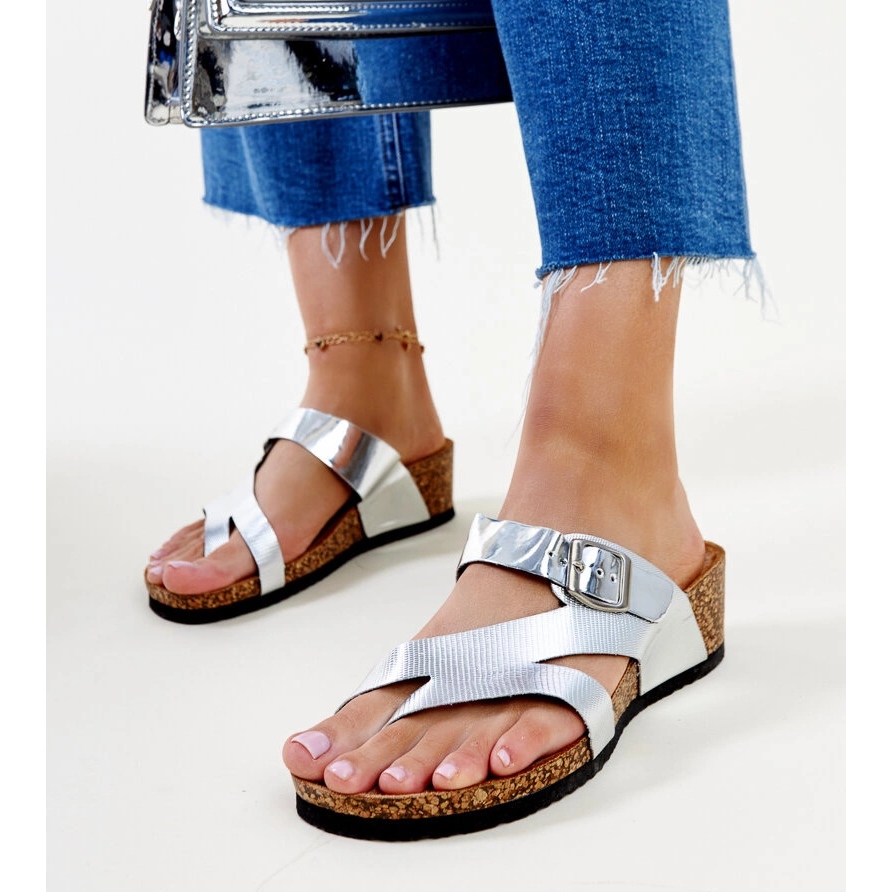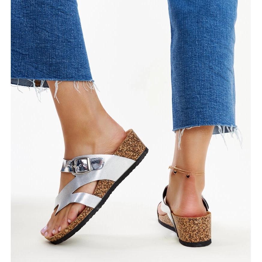 Les coins de Donata métalliques en argent sont un excellent choix pour les femmes à la recherche de chaussures élégantes et confortables au quotidien. Grâce à leur style unique, ces tongs ajouteront une splendeur à chaque stylisation de l'été. Leur couleur métallique va très bien avec diverses tenues, du décontracté à plus élégant.