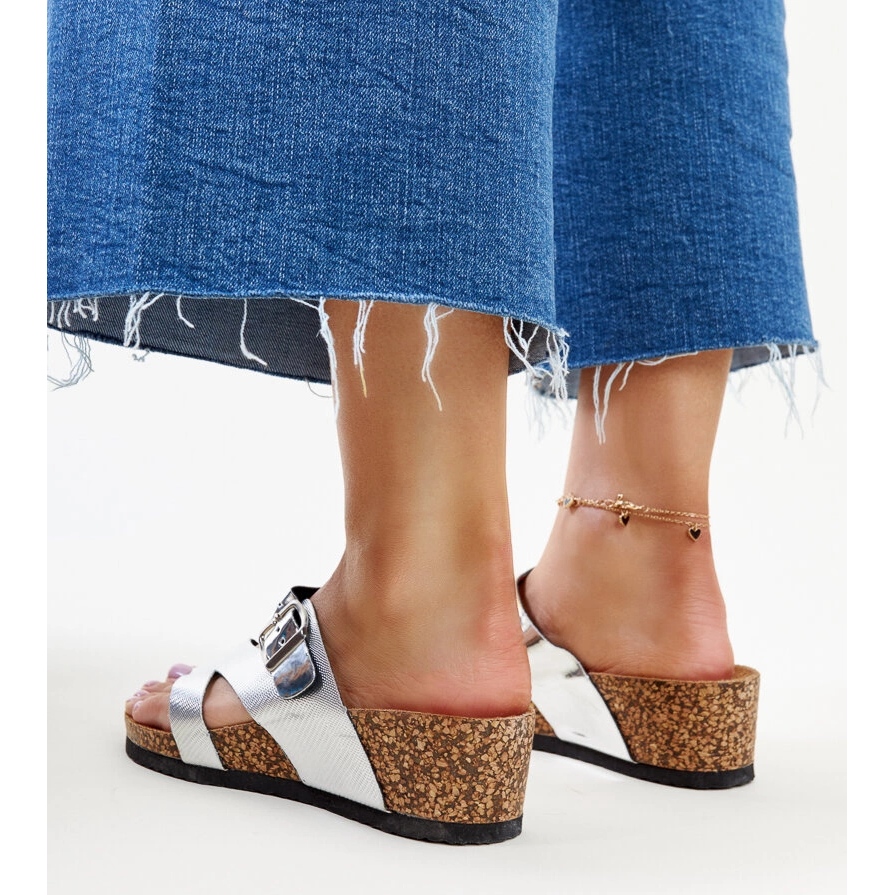 Détails: Mules compensées métallisées argentées Donata