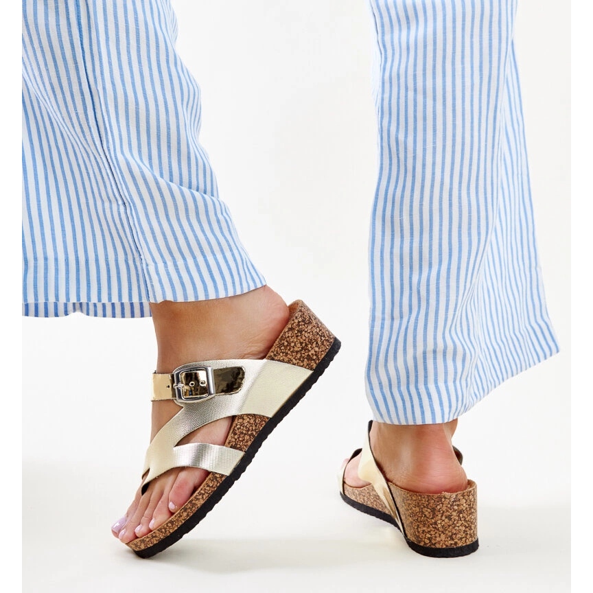 Inna marka Mules compensées métallisées dorées Donata d'or