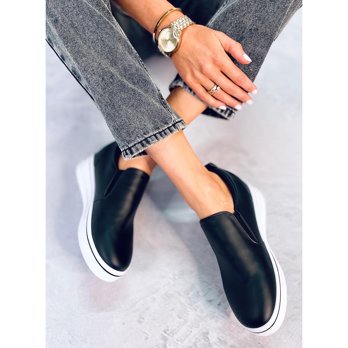 Conçues pour un usage quotidien, les baskets à enfiler de BM avec une semelle compensée de 7 cm de haut sont extrêmement élégantes. La texture lisse du cuir écologique souligne l'élégance des chaussures et en fait un élément de nombreux styles différents. La couleur noire ajoute de l'universalité, vous permettant de les combiner avec des jeans, des leggings et des robes aériennes.