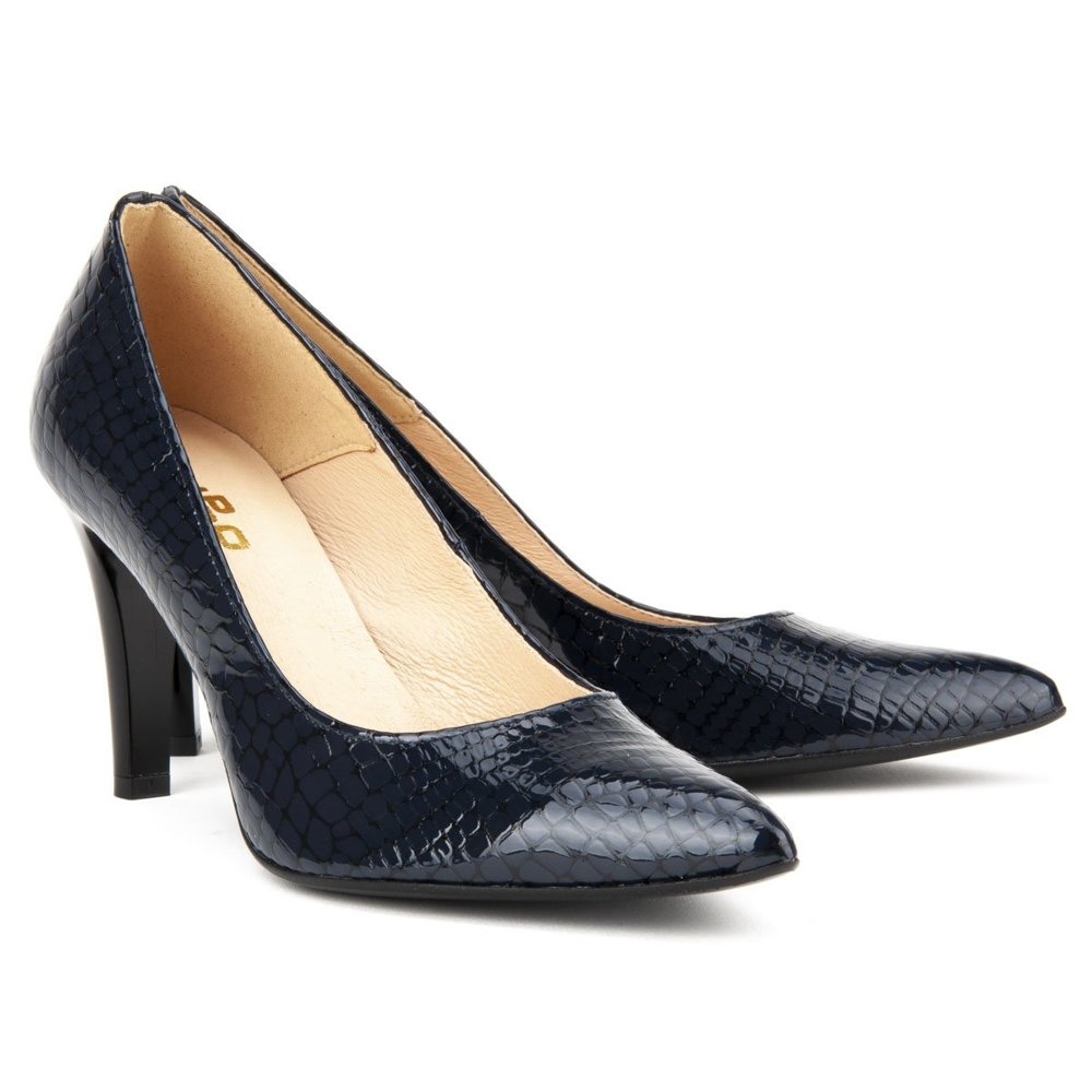 Le modèle F155 Navy Crocodile de la collection KeeShoes est parfait pour les occasions élégantes, et son design classique lui permet de s'adapter à de nombreux styles, des robes aux pantalons. Grâce à la semelle synthétique, les escarpins sont légers et flexibles, ce qui assure la stabilité à chaque pas.