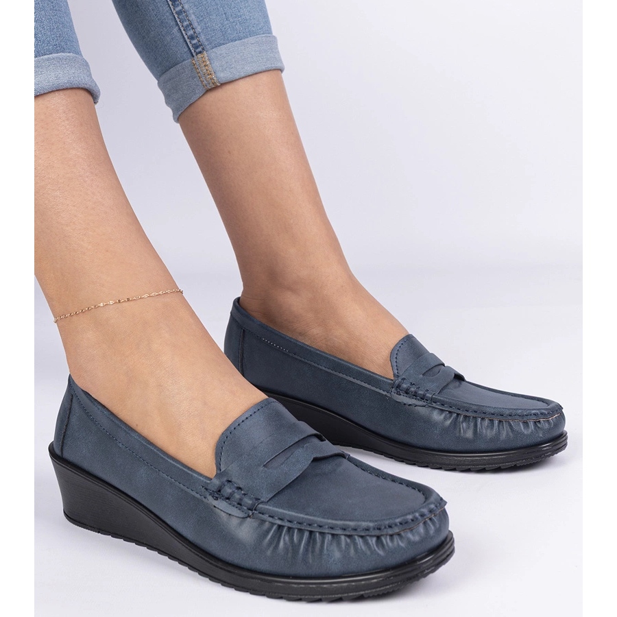 Les mocassins se distinguent par une couleur bleu marine intense et une coupe moderne, ce qui en fait un élément universel de la garde-robe. Grâce à un coin de 4 cm de haut, vous obtiendrez non seulement une hauteur subtile, mais aussi la stabilité à chaque étape. Le nez rond ajoute un personnage classique et le design inséré assure une facilité d'achat et de port.