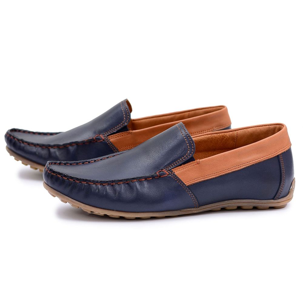 Détails: Neex | Mocassins Pardon Slip-On en cuir bleu marine pour hommes