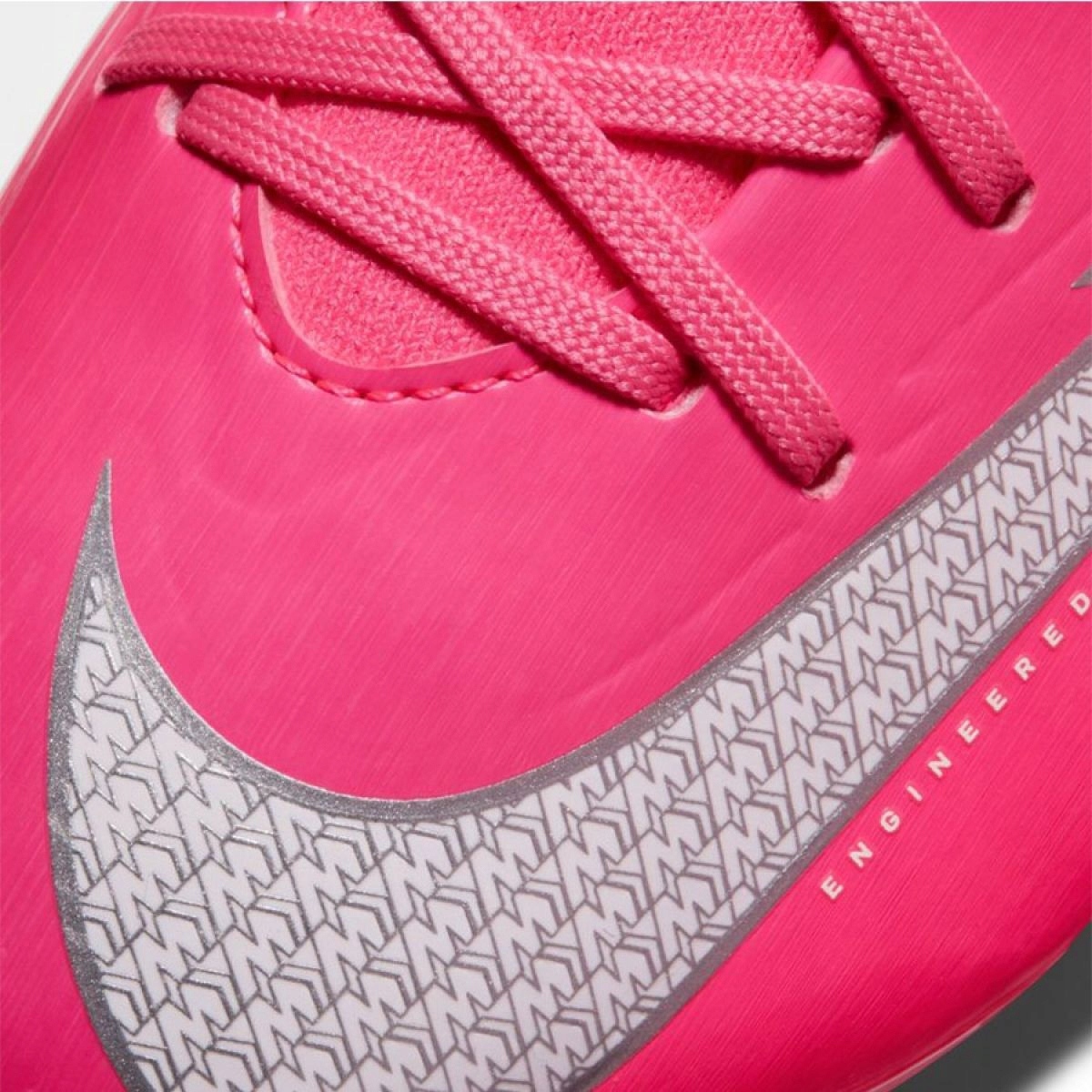 Les bouchons sont équipés de vis en plastique, ce qui les rend idéaux pour jouer sur des surfaces en herbe et en caoutchouc. La fermeture à lacets permet un ajustement facile au pied, offrant un maintien encore meilleur. En plus de la fonctionnalité, la couleur rose et les accents gris-argent attirent l'attention et ajoutent du caractère à n'importe quelle tenue de football.