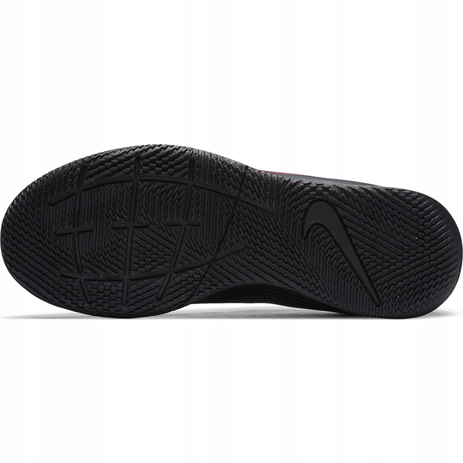 Nike Mercurial Vapor 13 Club Halls intérieurs pour les juniors qui jouent à des fins récréatives dans la salle. Le modèle de la collection Black X Chile Red Pack dans la couleur noire dominante et élégante combine la durabilité et le confort avec la bonne sensation du ballon.