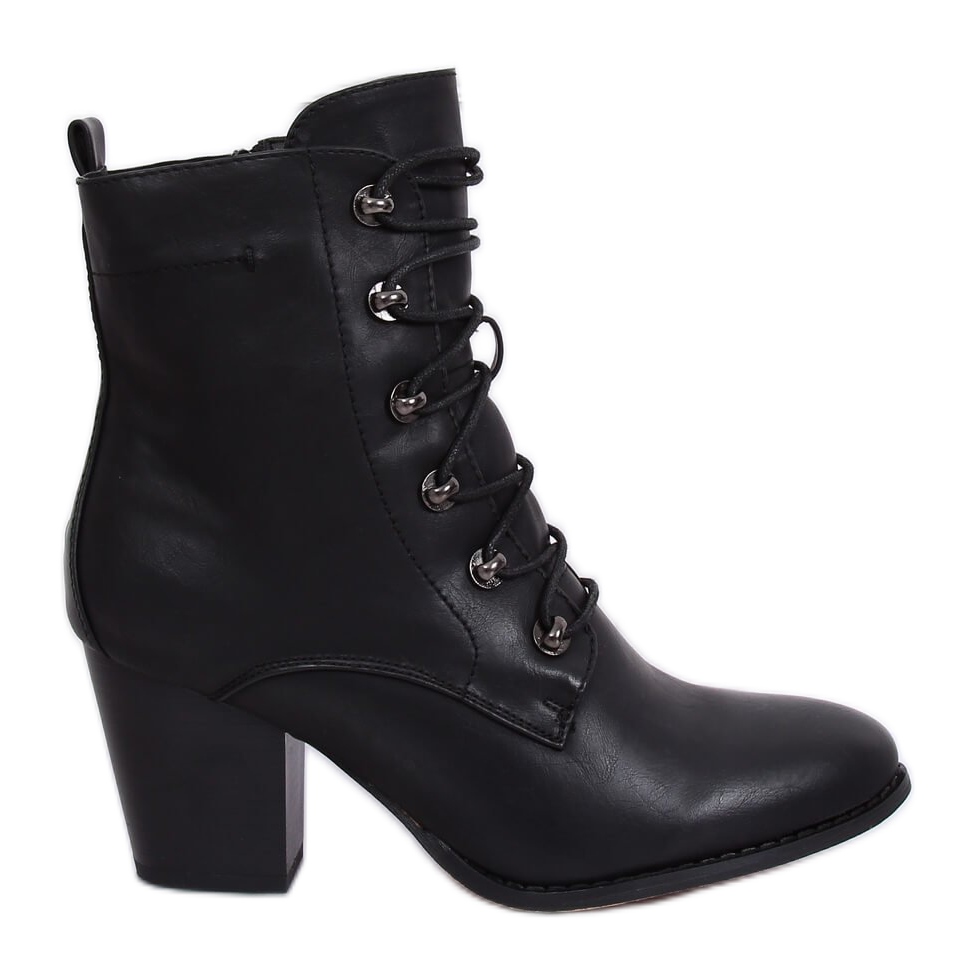 Détails: Noir 3698 Bottines noires à lacets et talons hauts