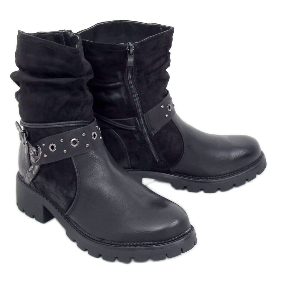 Découvrez les bottes noires 4514 Black avec protecteur, qui allient parfaitement l'élégance au style de tous les jours. Ces bottines uniques pour femmes en cuir écologique de haute qualité et en daim écologique attirent l'attention non seulement par leur esthétique, mais aussi par leur confort de port. La finition noire classique en fait un complément parfait à toute garde-robe.