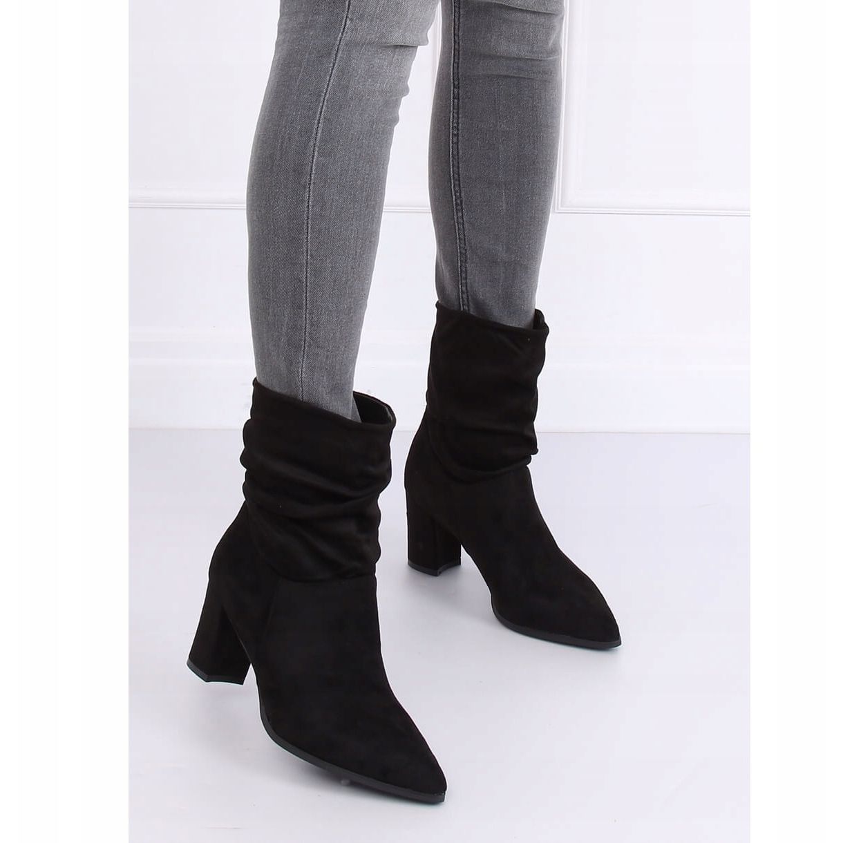 Noir 5582 Les bottines noires à tige tombante sont le choix parfait pour les femmes qui apprécient l'élégance et le confort. Ces bottes galbées avec un talon stable de 7,5 cm allient parfaitement design classique et style moderne. Fabriquées en daim écologique, elles se caractérisent par une tige large et froissée à la mode, qui assure un confort lors de l'enfilage.