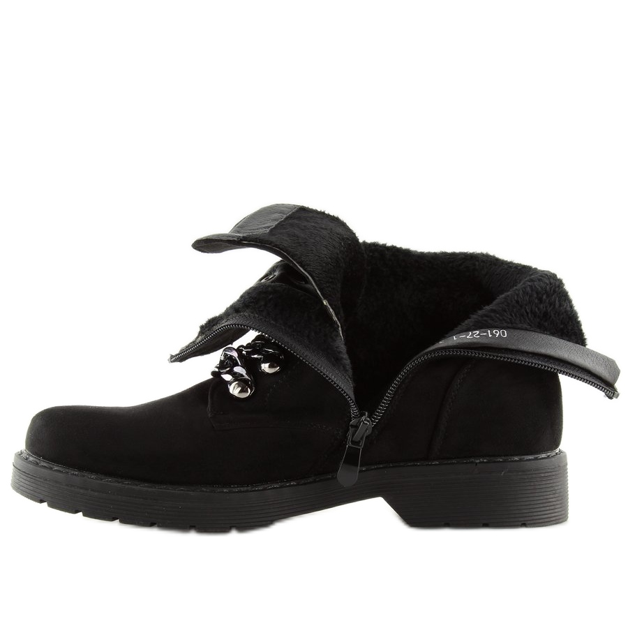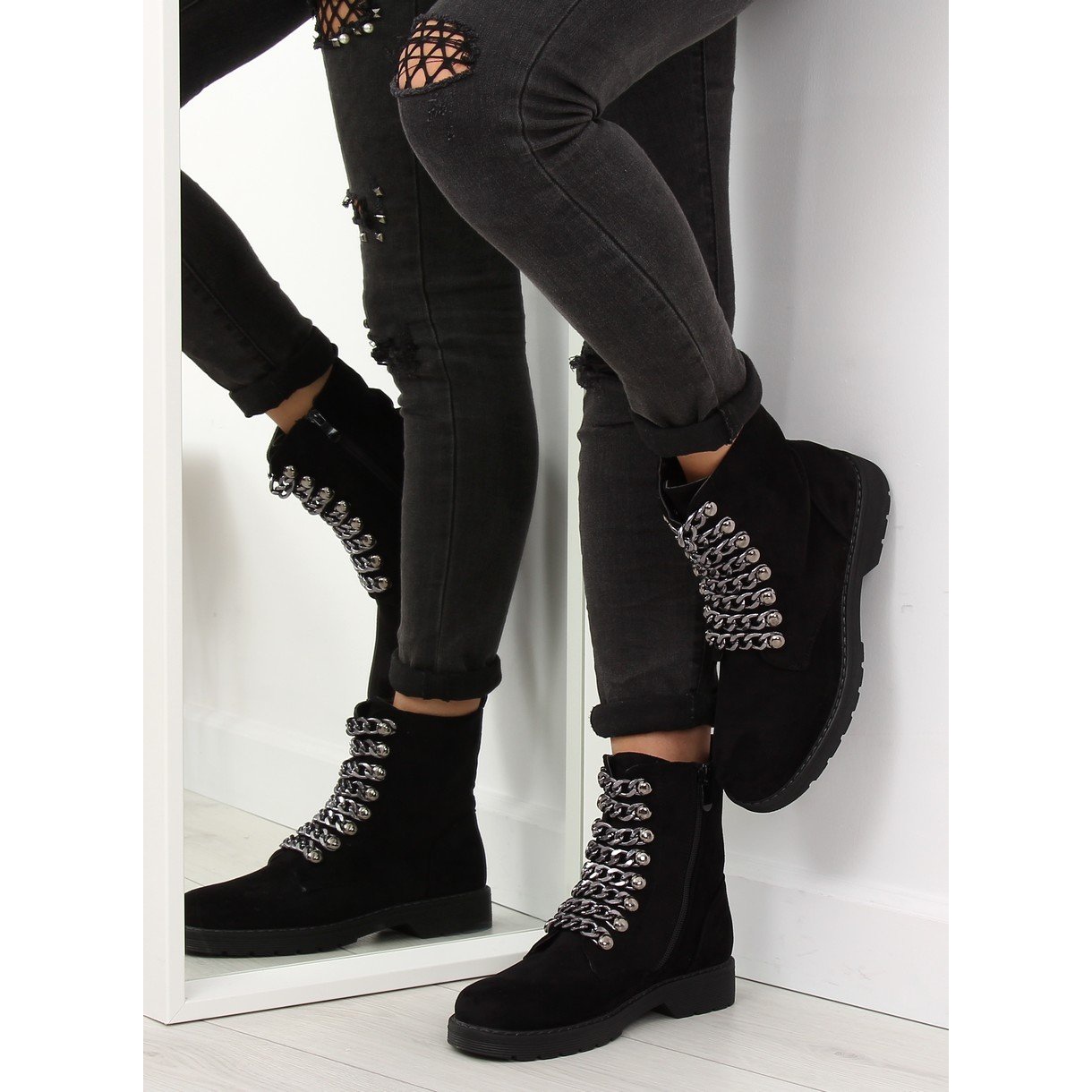 Découvrez un confort et un style exceptionnels avec les bottes de travail originales pour femmes en noir 061-27-1 Black. Ces chaussures plates tendance se distinguent par leur design unique, alliant style classique avec un accent rock sous forme de chaînes décoratives au lieu de laçage traditionnel.