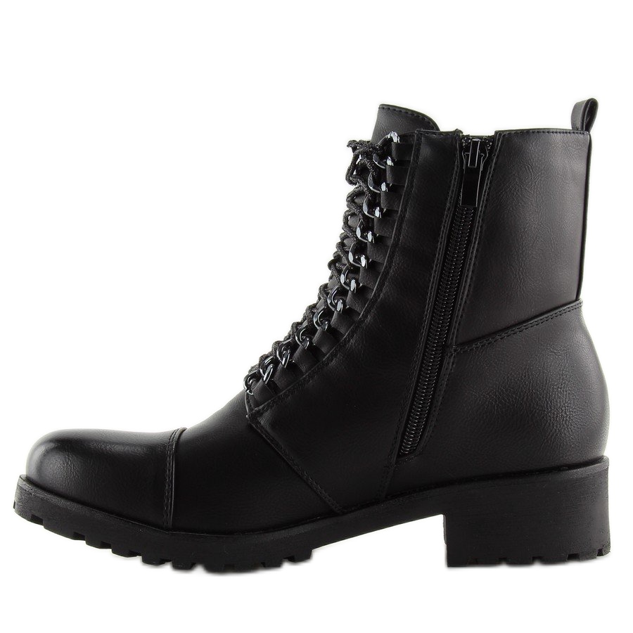 Un accent intéressant est le laçage décoratif, dans lequel les trous traditionnels ont été remplacés par des œillets en forme de chaîne. De plus, les lacets opalescents attirent l'attention et confèrent aux bottes un caractère unique. Dans un souci de commodité d'utilisation, le fabricant les a équipés d'une fermeture éclair à l'intérieur, ce qui rend l'enfilage et le retrait des chaussures un pur plaisir.