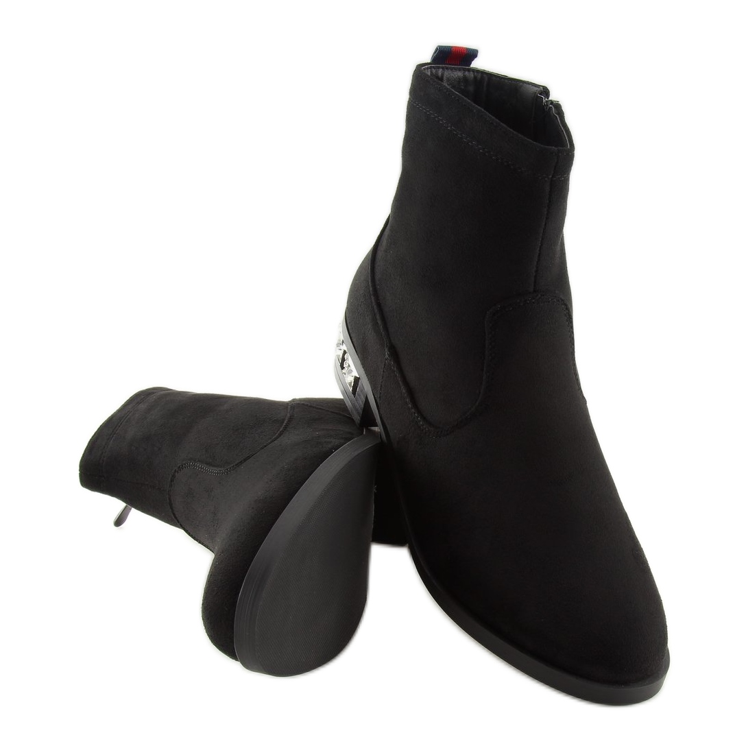 Les bottines noires pour femmes 168-176 Black sont le choix parfait pour les femmes qui apprécient l'élégance et le confort. Fabriquées en daim écologique de haute qualité, ces bottines allient une coupe classique à une décoration moderne sous forme de pierres sur le talon, qui leur confèrent un charme unique. Leur couleur noire universelle les rend parfaitement assortis aux tenues du quotidien comme aux tenues plus formelles.