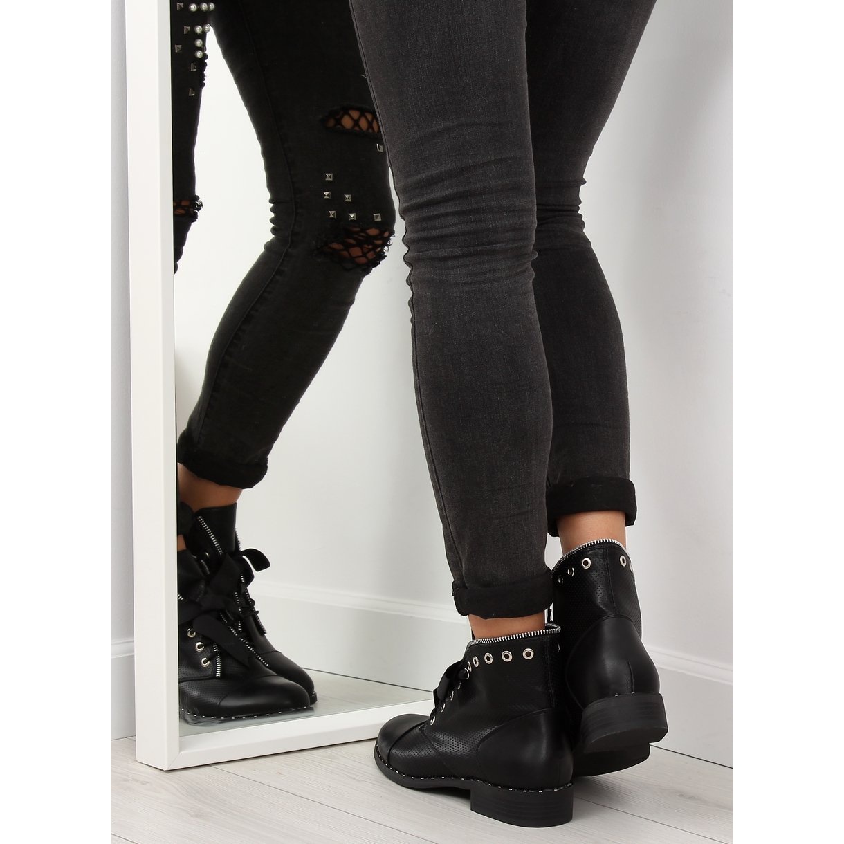 Découvrez les bottines noires originales pour femme 17018-9, qui allient parfaitement style rock et détails romantiques. Ces chaussures à lacets se distinguent par un nœud subtil et des clous décoratifs qui attirent l'attention et ajoutent du caractère à n'importe quel style. La finition ajourée rend les bottes non seulement à la mode, mais aussi exceptionnellement impressionnantes.