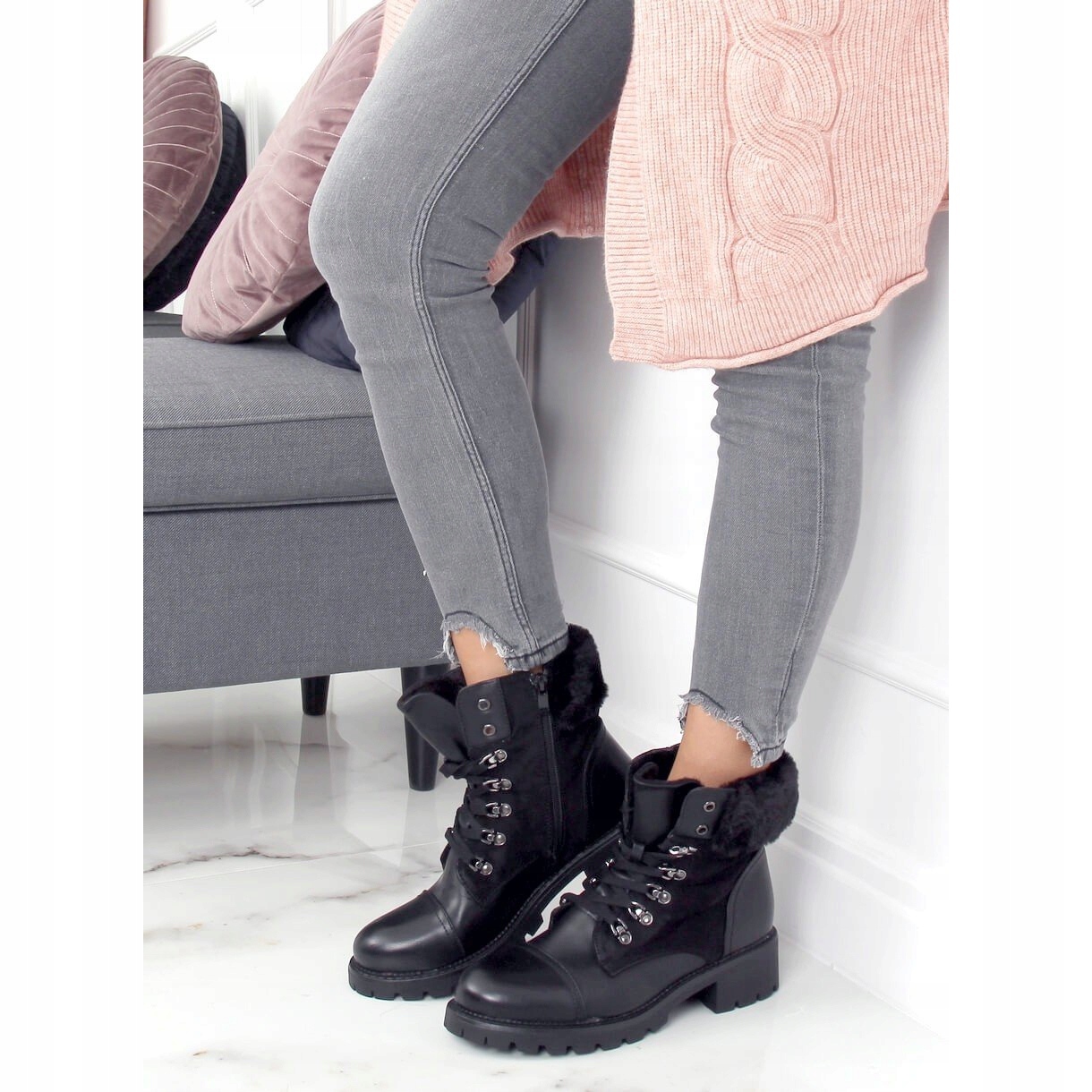 Le design original de ces chaussures attire l'attention de tous les amateurs de mode. La tige ornée d'une fourrure agréable au toucher leur confère non seulement un caractère chaleureux mais aussi stylé. L'utilisation de cuir écologique en combinaison avec du suède écologique est une garantie que vous choisissez des solutions écologiques tout en ne renonçant pas à l'apparence unique.