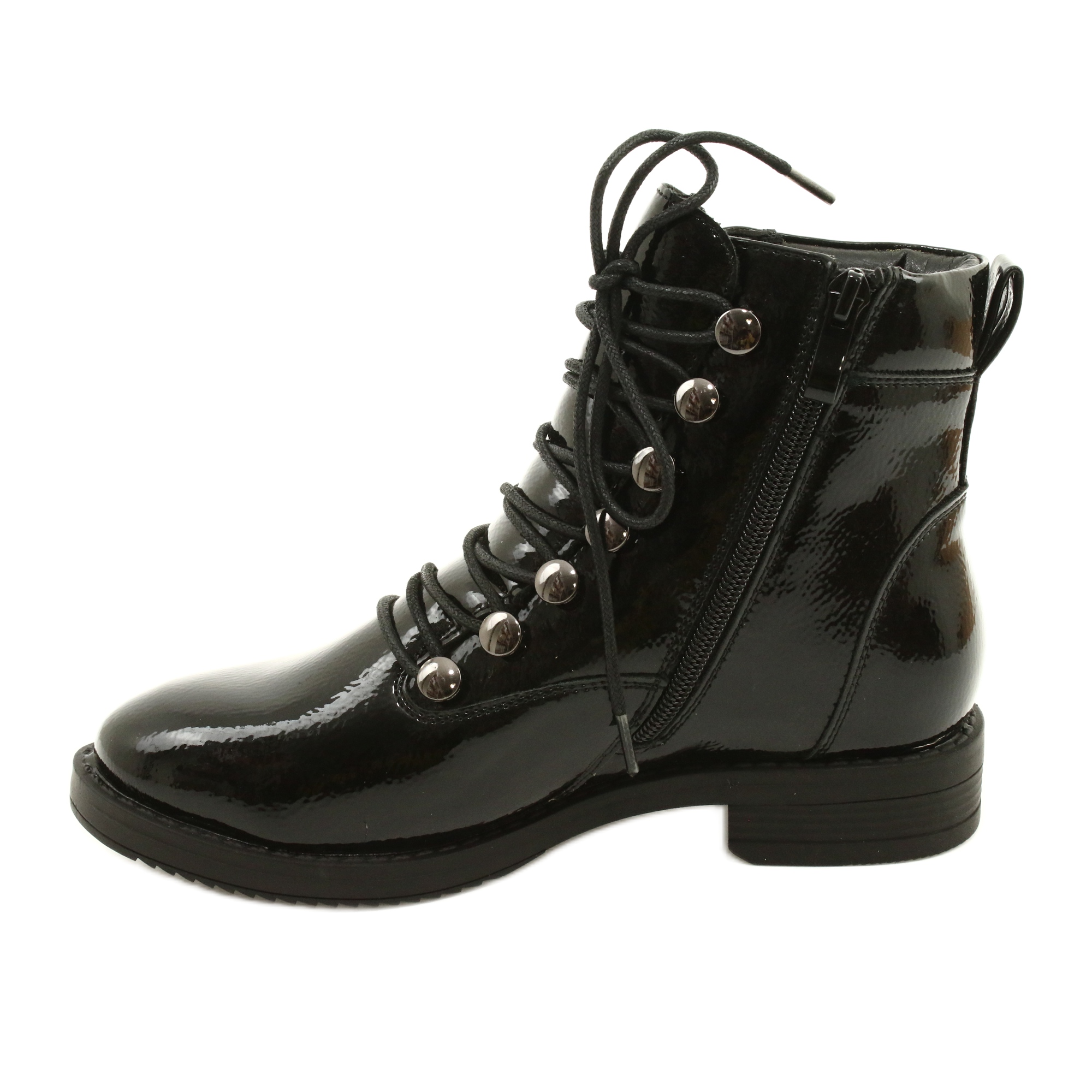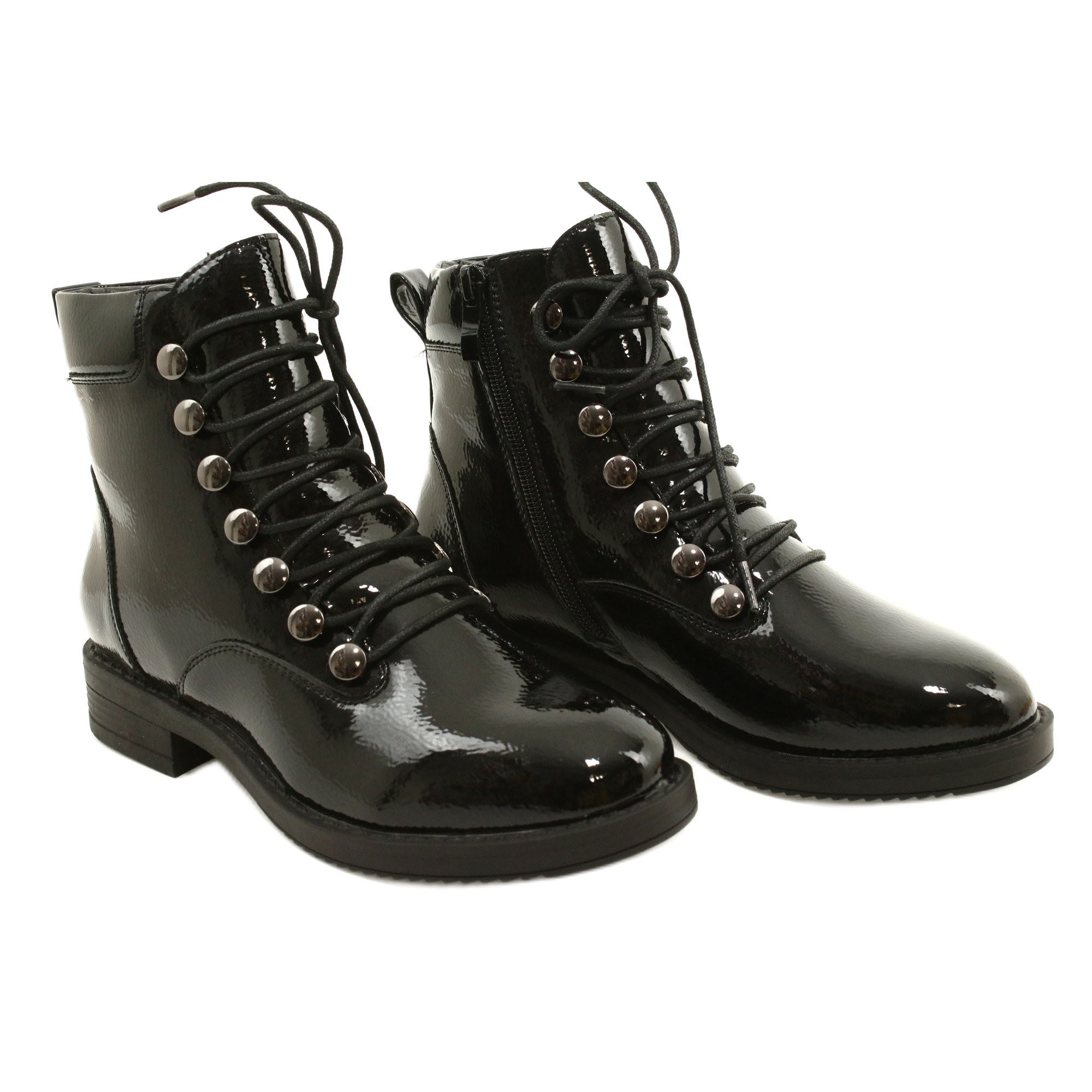 Les bottes sont fabriquées en cuir verni de haute qualité, ce qui leur confère un aspect et un style attrayants. Fermées par une fermeture éclair et lacées, elles offrent la possibilité de s'adapter parfaitement au pied, ce qui garantit un confort de port maximal. Leur talon plat de 3 centimètres de haut et la longueur supérieure d'environ 14 centimètres assurent stabilité et confort, même tout au long de la journée.