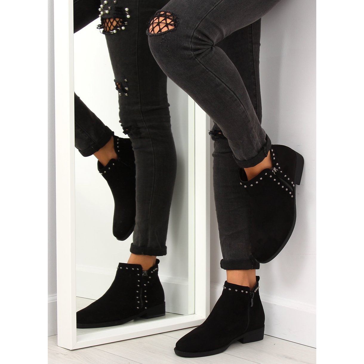 Êtes-vous à la recherche de chaussures qui vous permettront de vous démarquer de la foule ? Les bottines L1217 attirent l'attention avec des boules argentées décoratives qui ajoutent de l'originalité et un caractère moderne aux chaussures. Une fermeture éclair accrocheuse sur le côté facilite non seulement l'enfilage, mais souligne également leur design féminin. Il s'agit d'un modèle qui allie élégance et confort, ce qui en fait le choix parfait pour toute occasion.