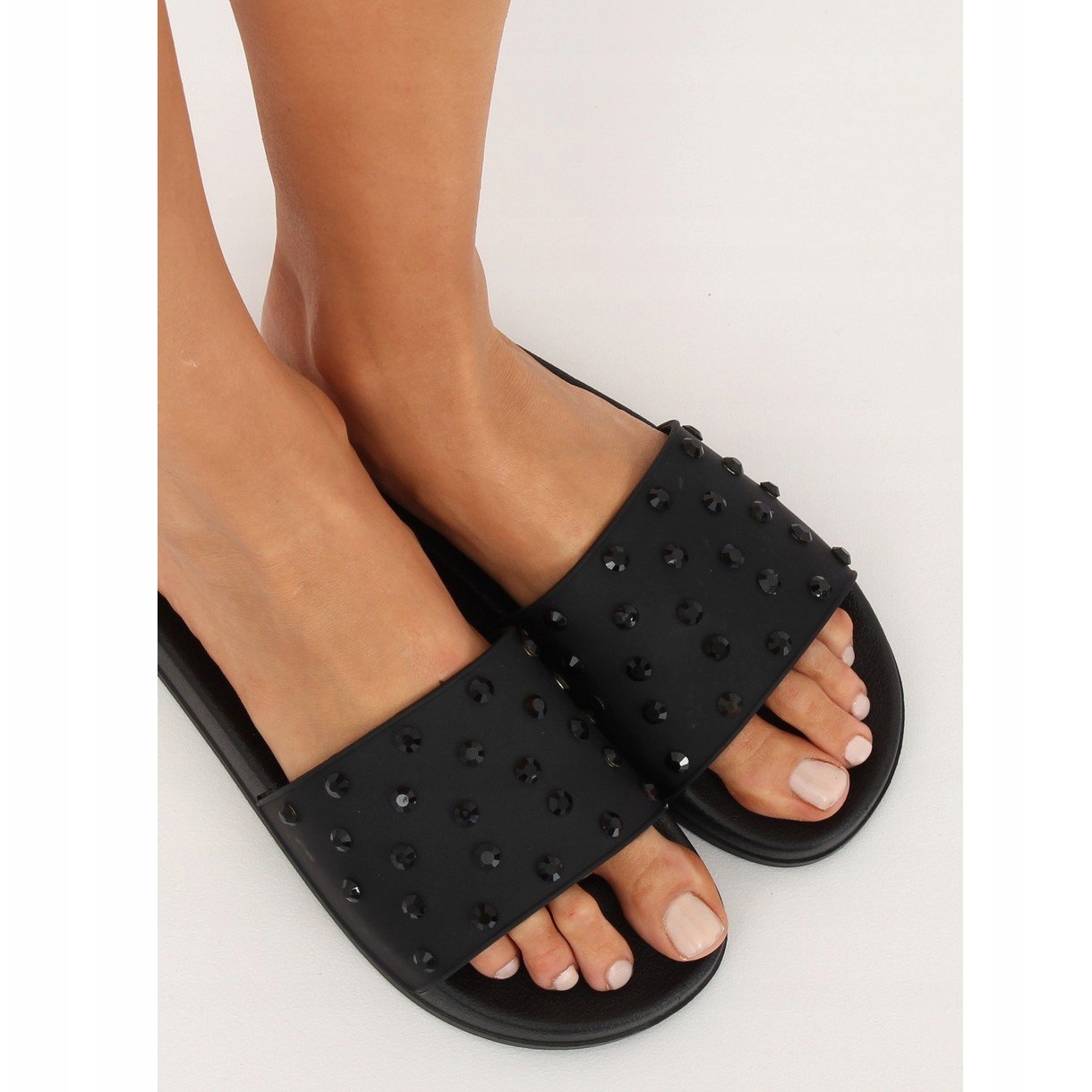 Inna marka Noir CK67P Chaussons noirs avec pierres le noir