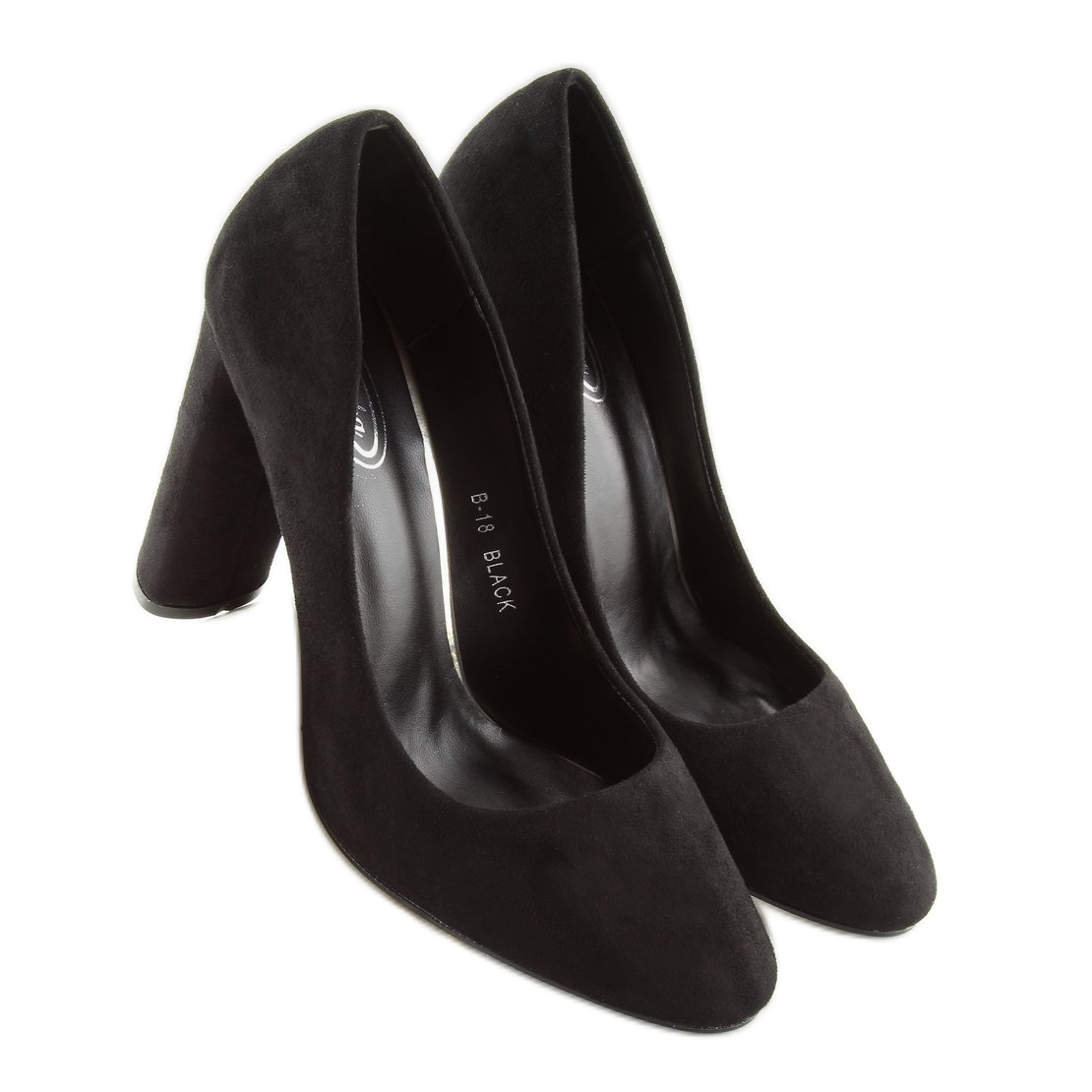 Les escarpins noirs à talons hauts B-18 sont un choix idéal pour les femmes qui apprécient à la fois l'élégance et le confort. Ces chaussures classiques, fabriquées en daim écologique, se caractérisent par un talon stable - un bloc de 9,5 cm de haut, ce qui en fait un choix parfait pour toute occasion.