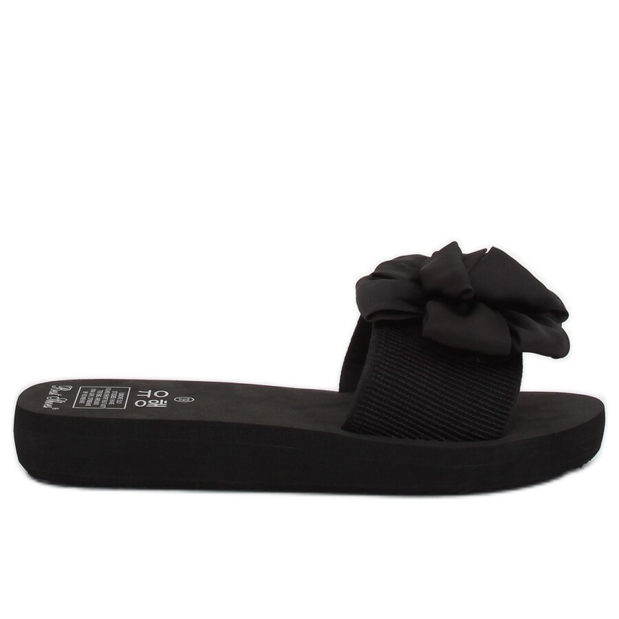 Découvrez le charme des tongs noires FX-2A080 noires avec une semelle en mousse - le complément parfait à votre style estival. Ces tongs pour femme se distinguent par un élégant nœud en satin, qui leur confère un caractère unique. La taille élastique avec cordon de serrage s'adapte parfaitement au pied, assurant un confort à chaque pas.