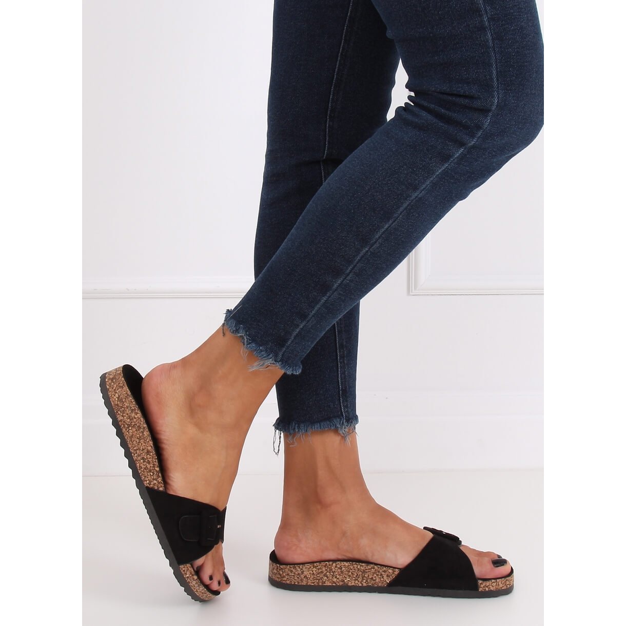 Inna marka Noir G-5026 Chaussons semelle liège noir le noir