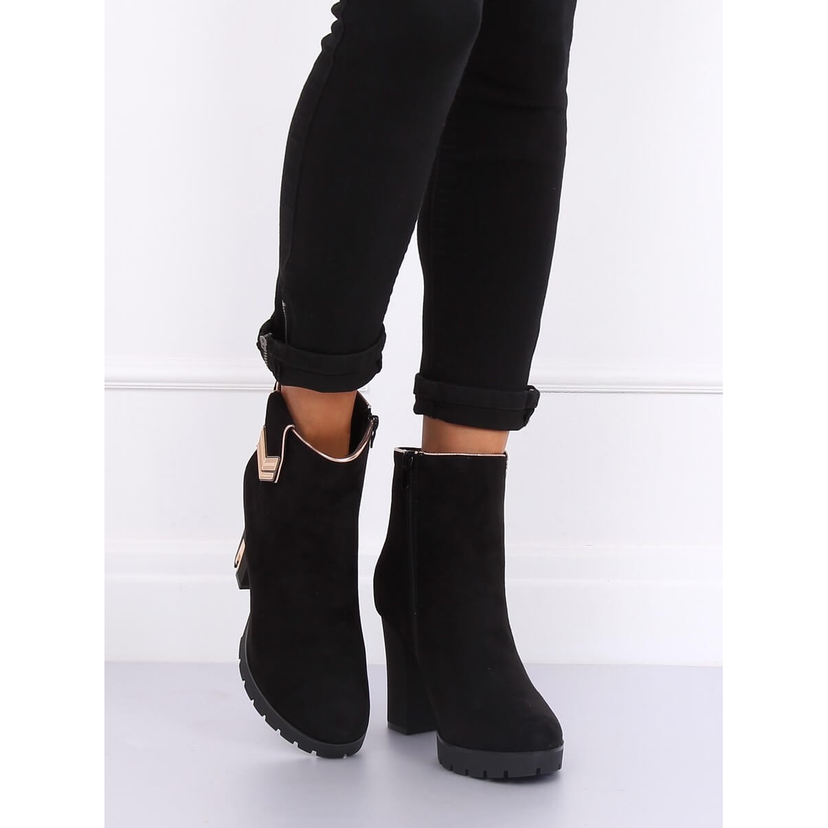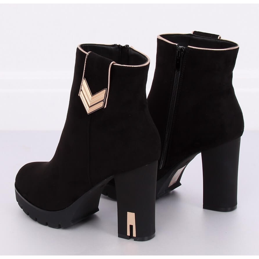Découvrez l'élégance et le confort avec les bottines à talons hauts M319 Black, qui sont le choix parfait pour toute femme qui souhaite une décoration subtile mais élégante pour sa garde-robe. Ces bottines noires, confectionnées en cuir suédé écologique de haute qualité, séduisent par leur design original et leurs éléments dorés qui leur confèrent un caractère unique.