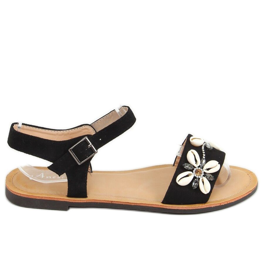Inna marka Noir M78 Sandales noires à coquillages le noir