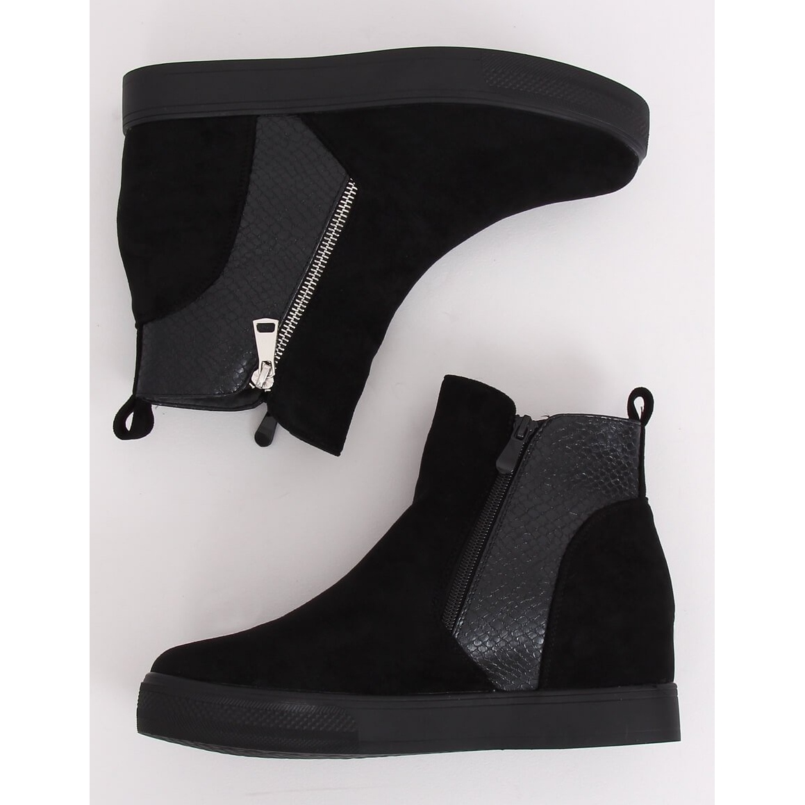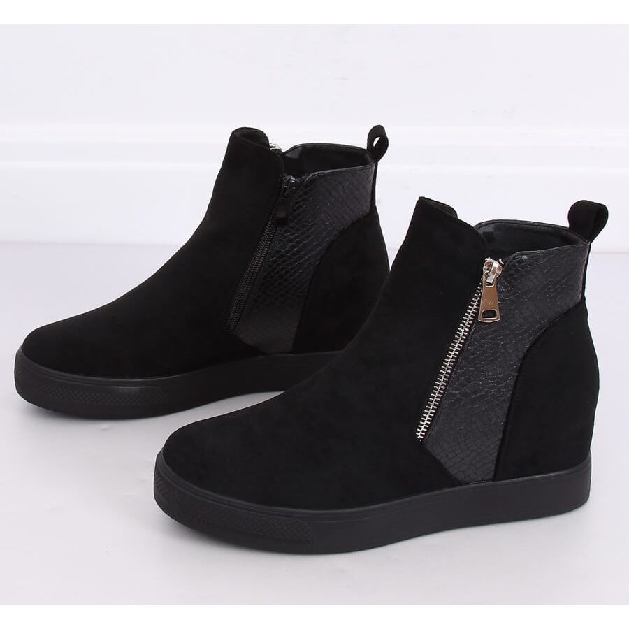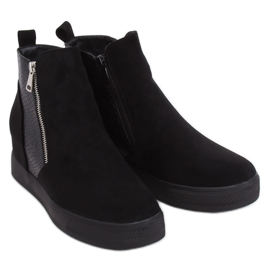 Noir Les bottines compensées cachées RQ235 noires sont un choix parfait pour les femmes qui apprécient l'élégance combinée au confort. Fabriquées à partir de daim et de cuir écologique respectueux de l'environnement, ces chaussures allient style et respect de l'environnement. Leur couleur noire classique les rend assortis à de nombreux styles, à la fois décontractés et plus formels.