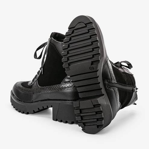 Conçus dans un style décontracté, les travailleurs Black Vel seront un excellent complément au style de tous les jours et un choix idéal pour diverses occasions. Grâce à la hauteur du talon de 5,5 cm et à la tige atteignant 16 cm, ces chaussures mettront en valeur votre silhouette avec succès, sans sacrifier le confort.