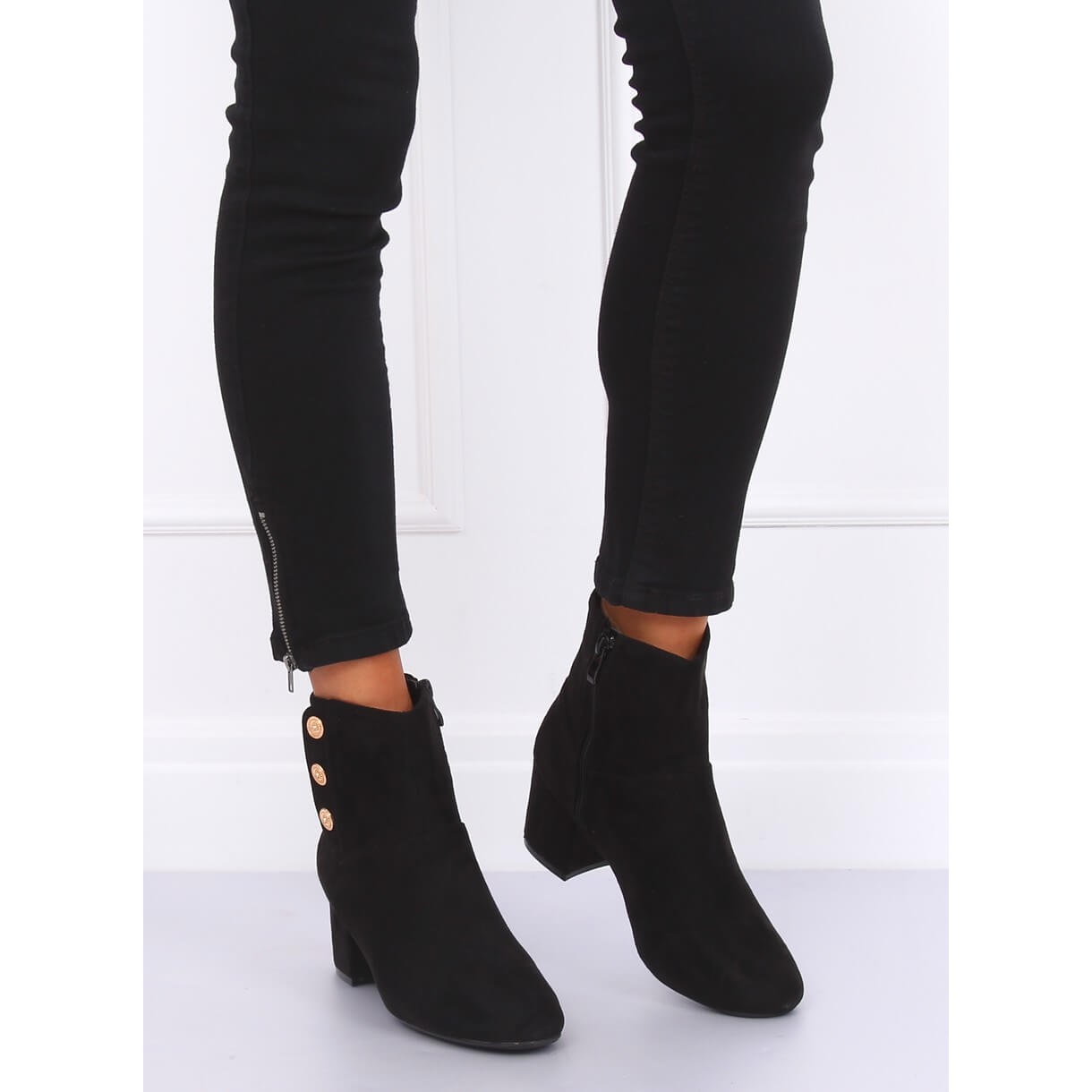 Les bottines noires à talons hauts YL51 Black sont le choix parfait pour toutes les femmes qui apprécient l'élégance et le confort au quotidien. Fabriquées en daim écologique de haute qualité, ces bottes classiques séduisent par leur simplicité et leurs détails subtils, comme les boutons décoratifs dorés placés sur le côté de la tige.