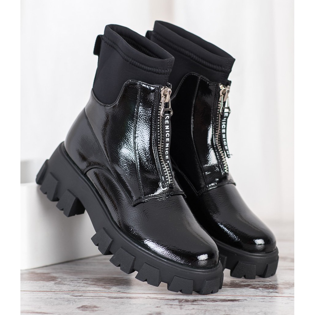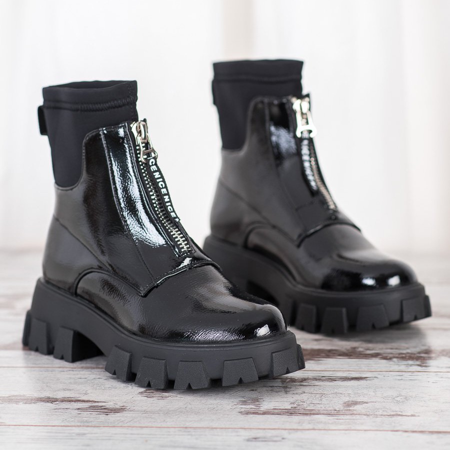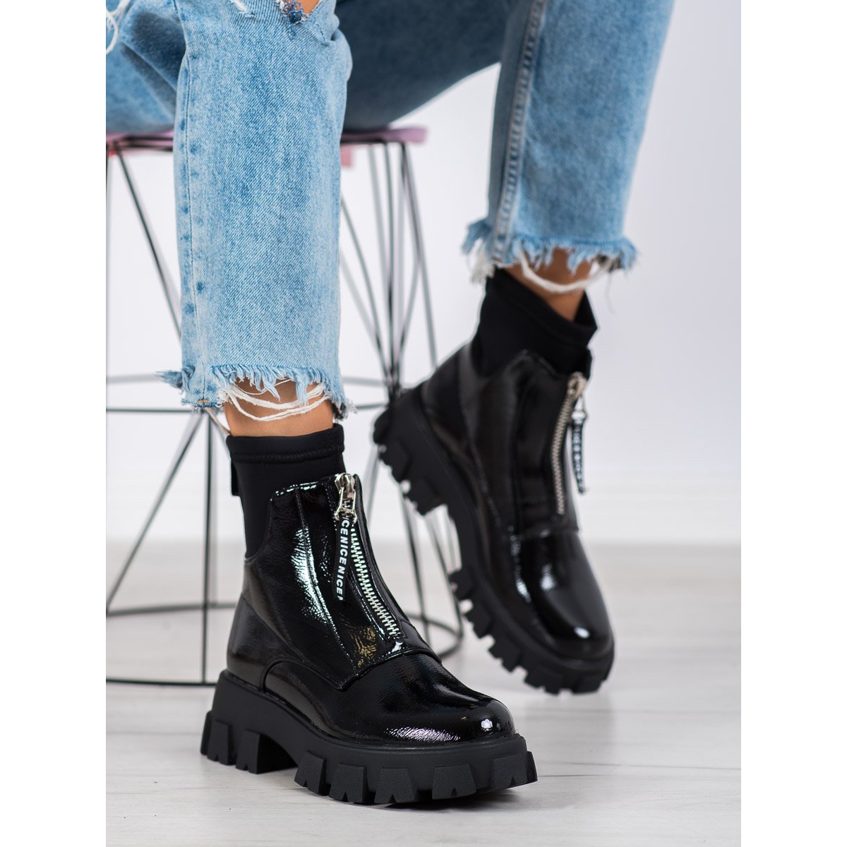 Fabriqués en cuir écologique de haute qualité, les ouvriers se caractérisent par une couleur noire élégante qui s'agence à de nombreux styles. La fermeture éclair décorative leur ajoute un caractère unique, rendant chaque look unique. La hauteur du talon est de 5,5 cm et la plateforme de 3,5 cm, ce qui la rend confortable à porter sans sacrifier le style.