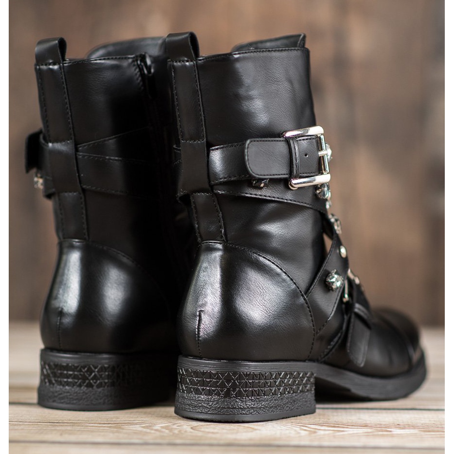 Les ouvriers Kayla noirs avec une sangle décorative sont le choix parfait pour les femmes qui souhaitent ajouter un accent rock à leur garde-robe. Ces bottes élégantes allient confort et design original, devenant un complément parfait aux styles décontractés et plus élégants.