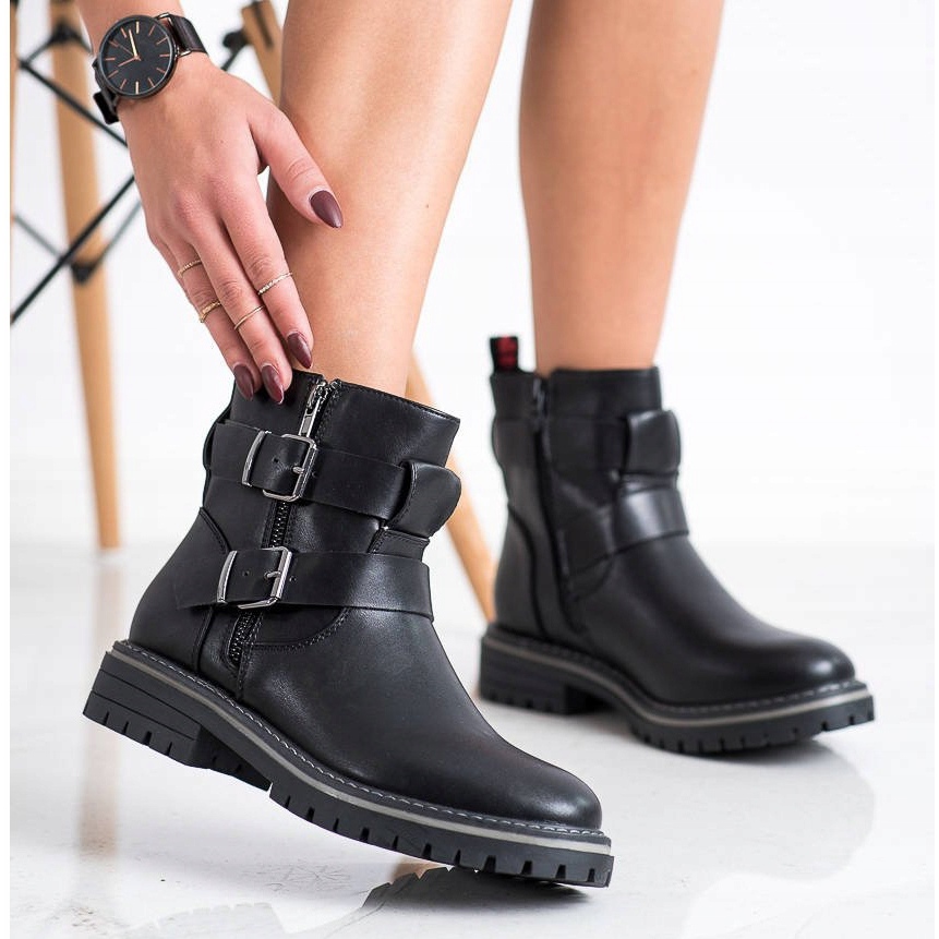 Une semelle crantée en matériau synthétique offre une bonne adhérence et une bonne durabilité, ce qui en fait un choix idéal pour un usage quotidien. De plus, la boucle décorative et la fermeture éclair leur confèrent un caractère rock qui s'intègre parfaitement au style décontracté.