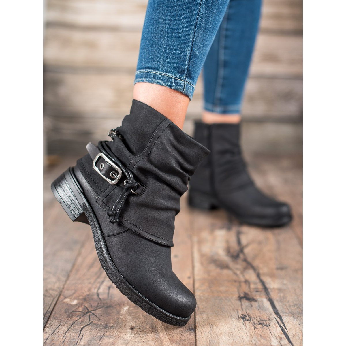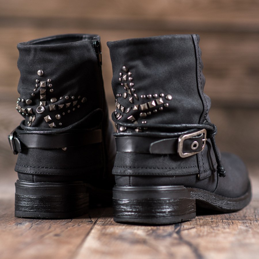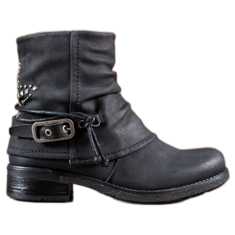 Leur large talon haut de 5 cm garantit le confort lors des longues promenades, et des détails uniques, comme les brides décoratives avec boucles et strass à l'arrière de la tige, leur confèrent un caractère rock. Les ouvriers ont un bout rond, ce qui les rend non seulement élégants, mais aussi confortables pour les pieds.