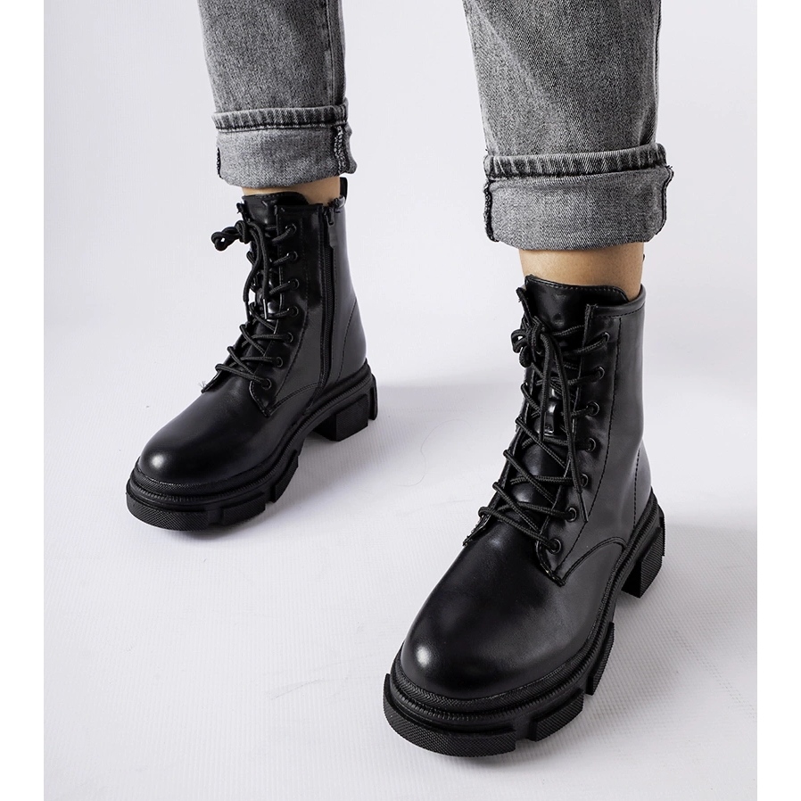 Black Classic Berto Workers (modèle LW328) - style et commodité pour les jours froids. Fabriqué en cuir écologique, avec une semelle en caoutchouc et une isolation, assurez-vous du confort et de la protection contre les conditions météorologiques défavorables. Leur orteil rond intemporel et leur plate-forme de 5 cm ajoutent une élégance et mince subtilement la silhouette, et la couleur noire les fait s'adapter à la fois en jean et en jupes ou en robes.