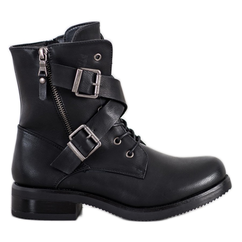 Les ouvriers Kayla noirs se distinguent par une tige solide, de 14 à 15 cm de haut, qui assure un ajustement parfait à la cheville. Le bout rond et le talon intégré renforcé ajoutent du caractère et garantissent en même temps un confort de port. Un talon plat de 3,5 cm en fait un choix idéal pour un style quotidien, sans alourdir vos pieds pendant une longue journée.