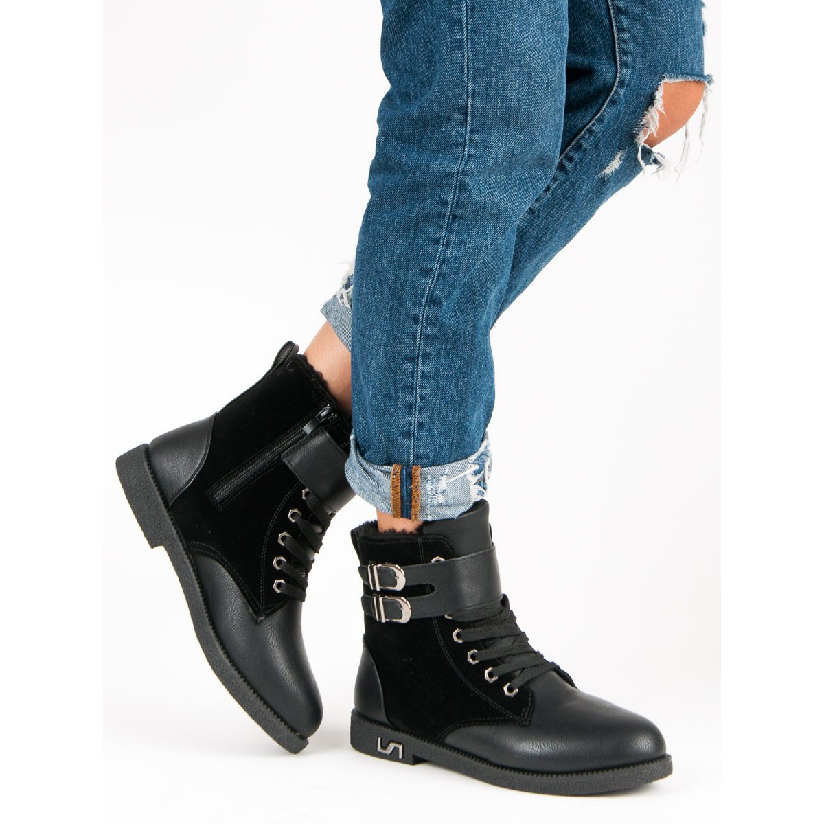 Les bottes de travail noires sont un choix parfait pour la saison d’automne et d’hiver et plairont sûrement à toutes les femmes. Ces bottines extrêmement élégantes complètent parfaitement les styles décontractés et s'adaptent aussi bien aux pantalons qu'aux robes. Fabriqués à partir d'une combinaison de différents matériaux, ils attirent l'attention et ajoutent du caractère à n'importe quelle tenue.