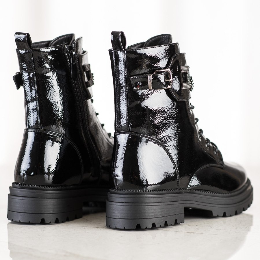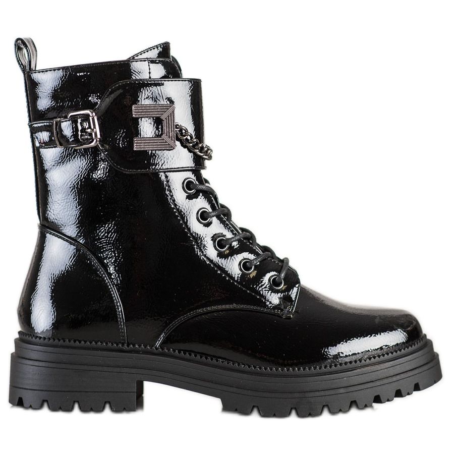 Découvrez un style et un confort uniques dans la nouvelle collection S. BARSKA ! Les bottes de travail laquées avec chaîne de couleur noire sont un incontournable de votre garde-robe pour la saison automne/hiver. Ces bottes extraordinaires allient parfaitement style décontracté, rock et mode, ajoutant du caractère à vos tenues.