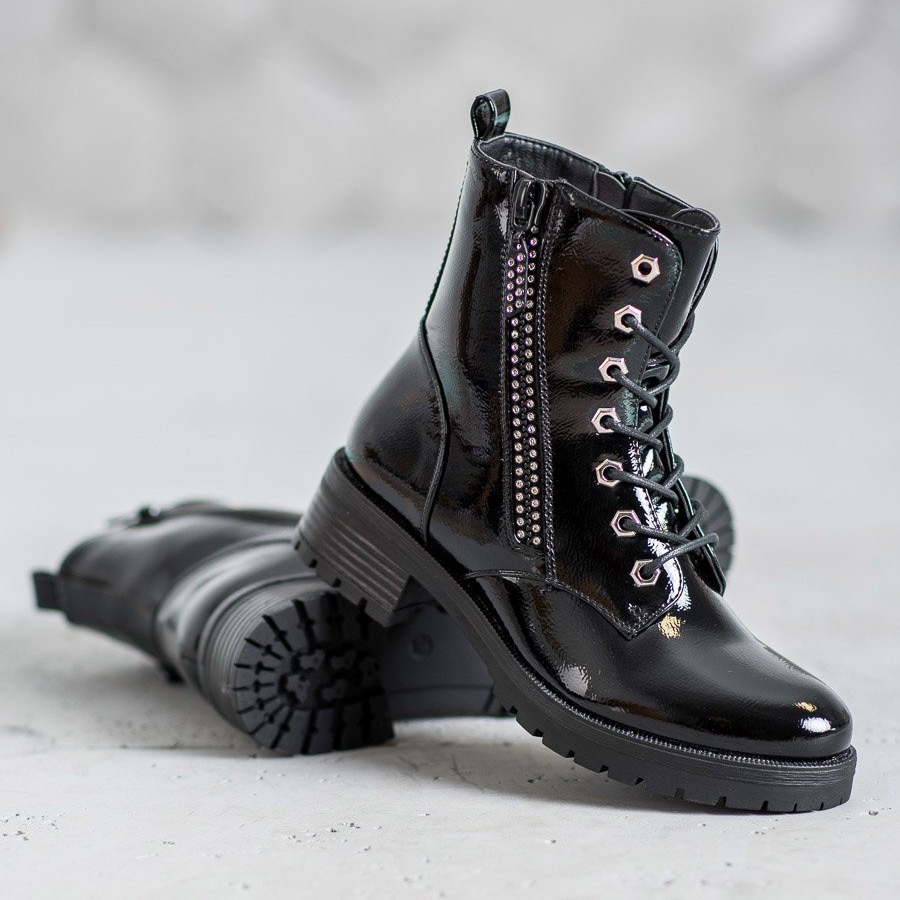 Grâce au laçage et à la fermeture éclair, les ouvriers sont faciles à enfiler et s'adaptent parfaitement au pied. La fermeture éclair décorative avec des cristaux leur donne un éclat unique, ce qui en fait le choix parfait pour diverses occasions. L'isolation rend ces chaussures parfaites pour les journées plus froides et leur hauteur supérieure de 15 cm protège en outre du froid.