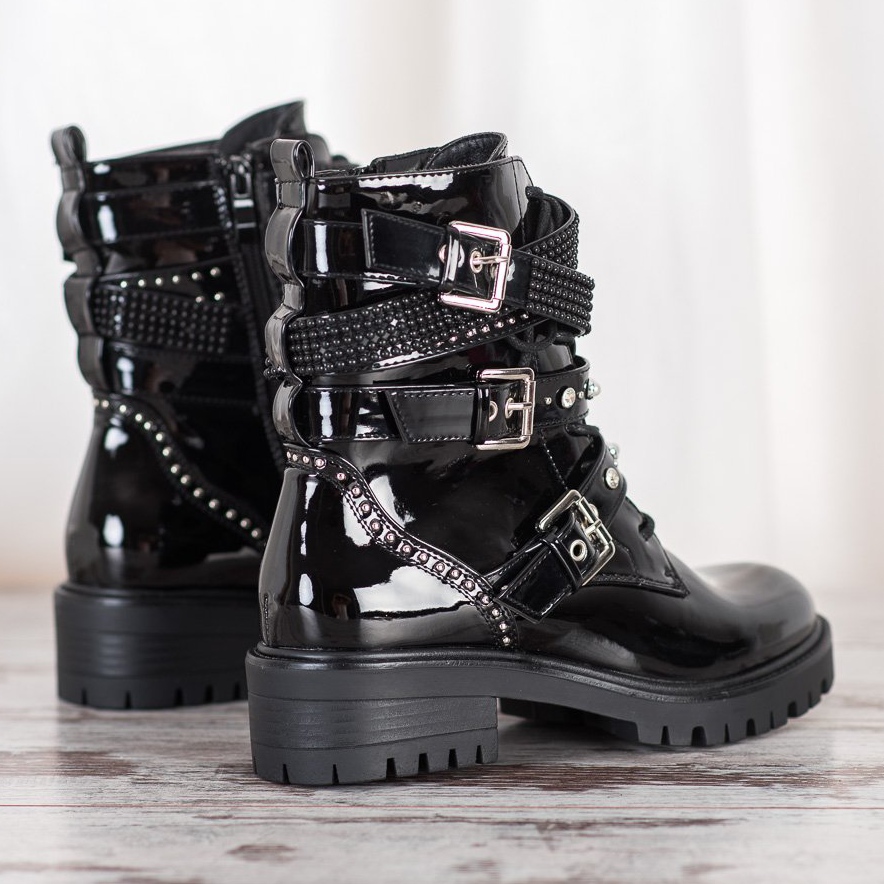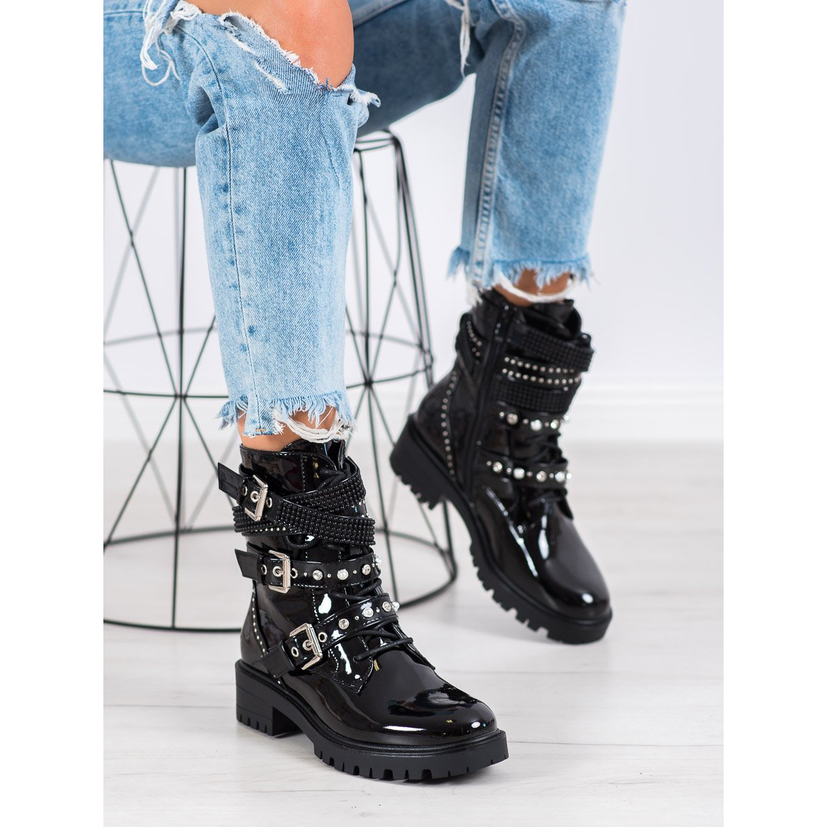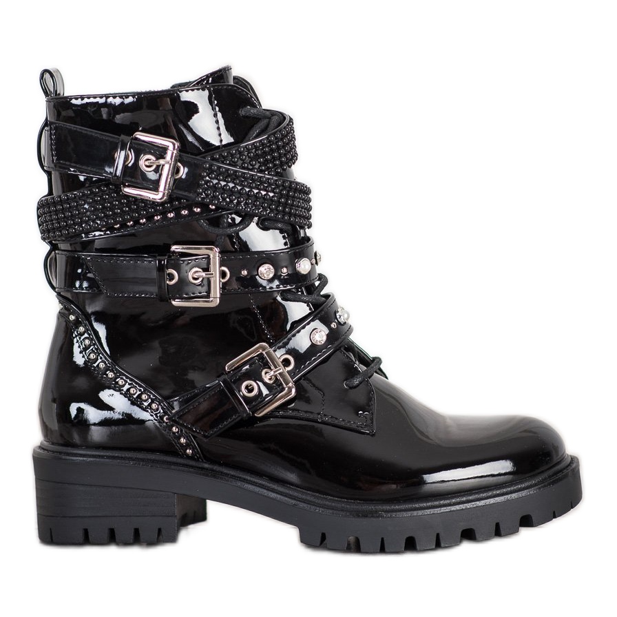 Les travailleurs laqués Seastar sont décorés de détails accrocheurs - une boucle, une ceinture décorative et des strass, qui leur confèrent un caractère unique. La semelle avec bande de roulement en plastique assure la stabilité et une bonne adhérence, ce qui est particulièrement important sur les surfaces automnales et hivernales.