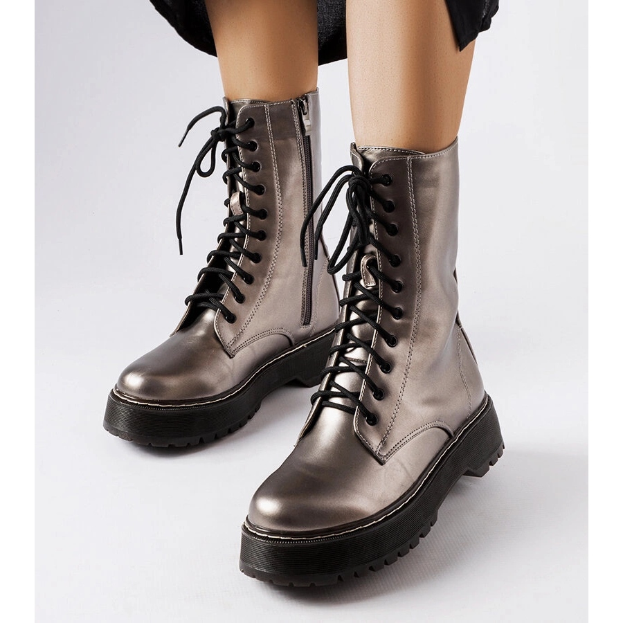 Des travailleurs élégants d'une autre marque d'armes à feu - Metallic Brown, qui ajoutera le caractère de tout style. Fabriqué en cuir écologique avec un brillant délicat, ils combinent un look à la mode avec des solutions pratiques: le réchauffement chaud, une semelle en caoutchouc solide et une attache et un laçage confortables. Parfait pour les jours plus froids lorsque vous voulez avoir l'air élégant et à l'aise.
