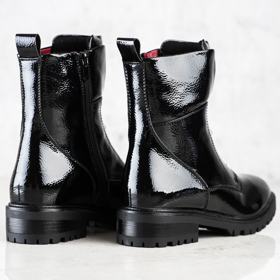 Découvrez un style et un confort extraordinaires avec les travailleurs à fermeture éclair laquée Erynn en noir. Ces élégantes bottines, fabriquées à 100 % en éco-cuir, sont le choix parfait pour les journées les plus froides de la saison automne/hiver. Grâce à l'isolation et au talon intégré et rigidifié, vos pieds seront toujours au chaud et protégés.