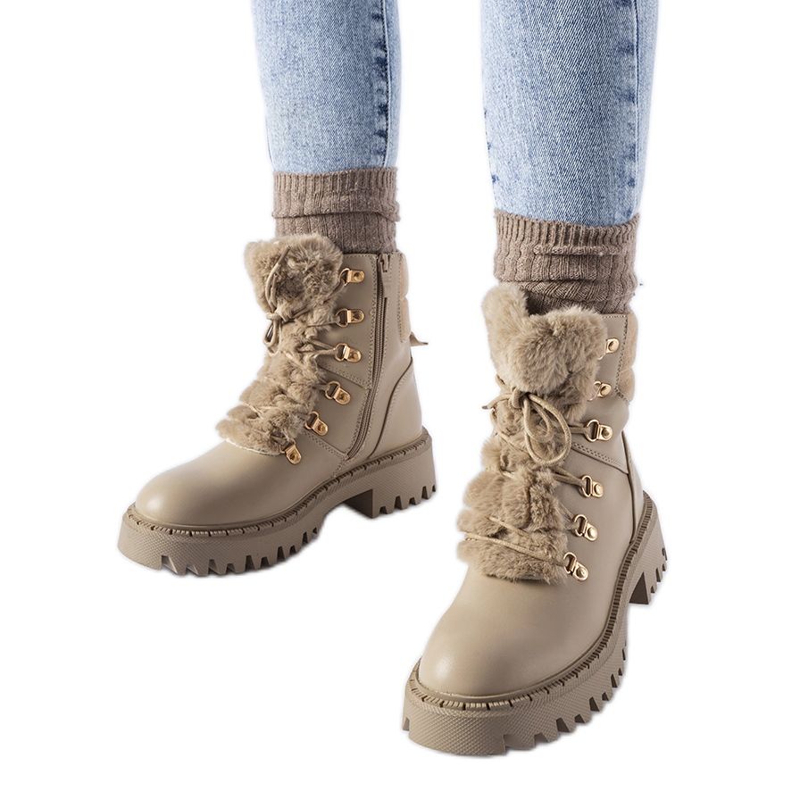 Les travailleurs du quarto élégant dans une nuance à la mode de kaki (beige) sont une proposition pour les femmes qui apprécient une combinaison de confort et de style urbain. L'intérieur isolé et le nez arrondi garantissent le confort même pendant une longue usure, et la fourrure décorative ajoute un caractère unique aux chaussures et une féminité subtile. La semelle à talon plate moyenne de 5 cm et une semelle en caoutchouc assurent la stabilité et une bonne adhérence sur diverses surfaces. Le fermoir en dentelle vous permet de correspondre parfaitement à la chaussure au pied, tandis que la hauteur de la cheville protège contre le froid.