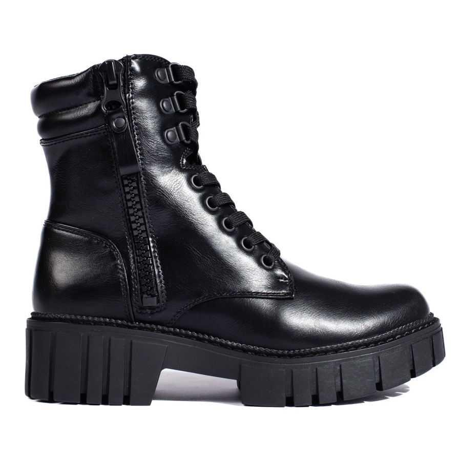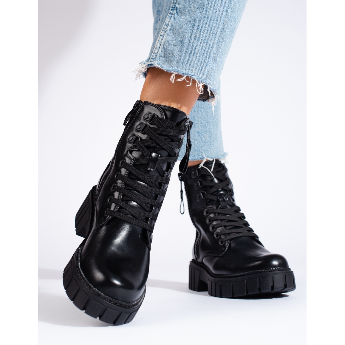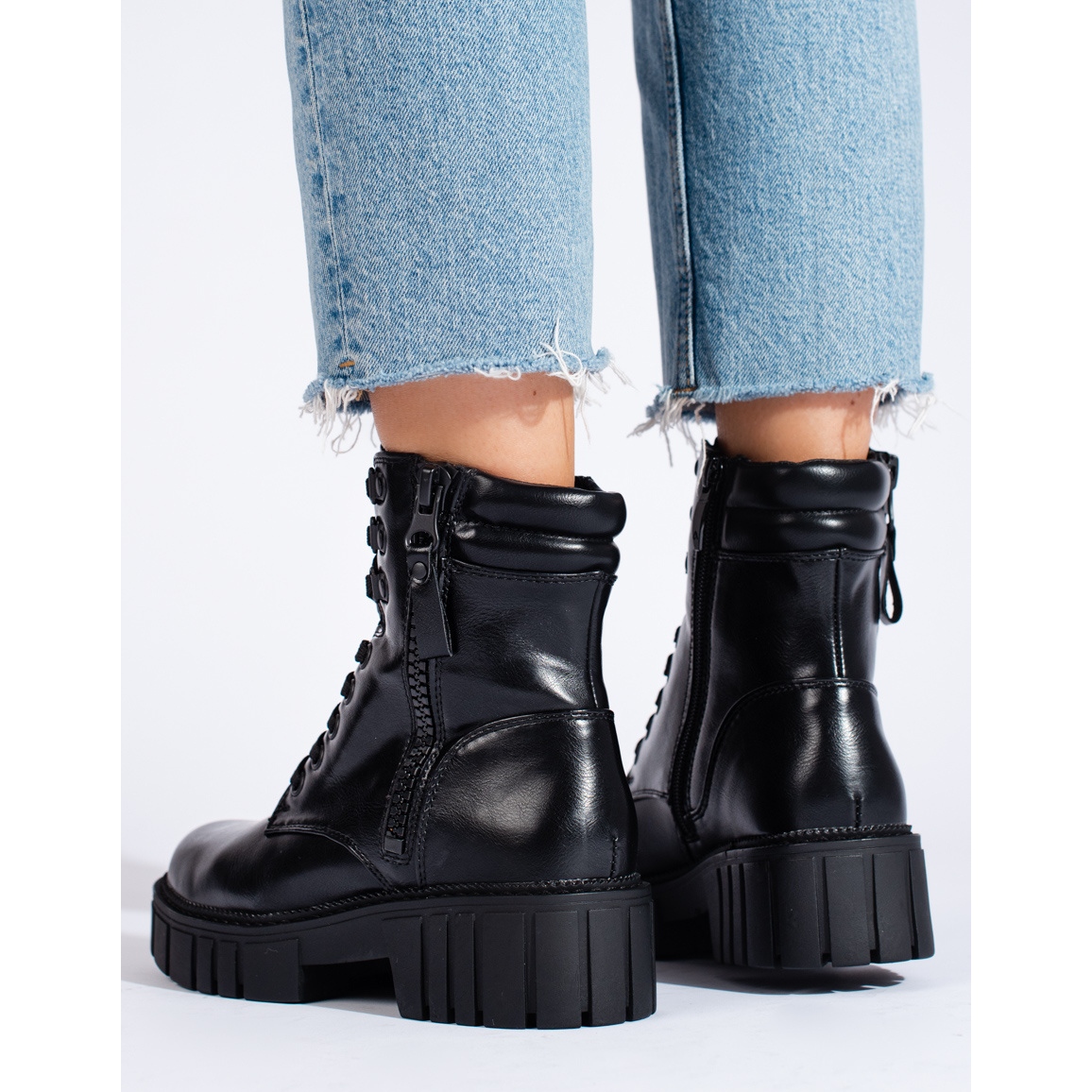 Travailleurs noirs élégants et résistants - une combinaison parfaite de style décontracté et rock. Fabriqué en cuir biologique, avec un réchauffement et une semelle stable avec une bande de roulement, ils travailleront sur des jours plus frais, ajoutant du caractère à des stylisations quotidiennes et plus expressives.