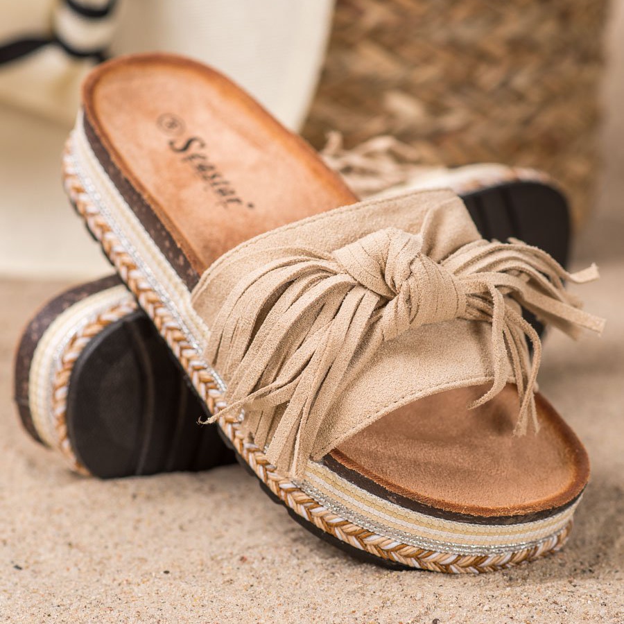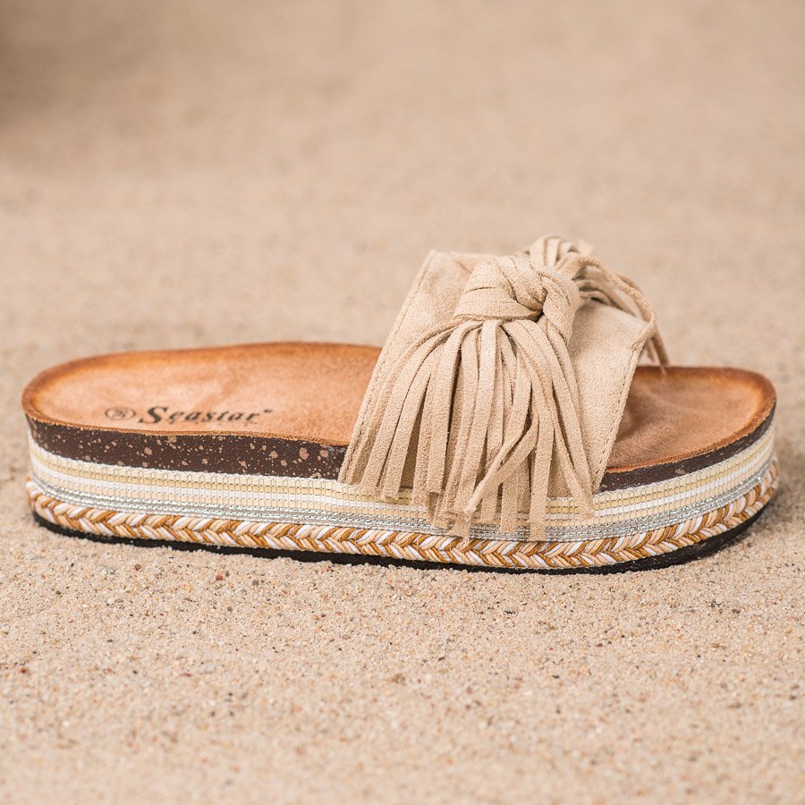 Préparez-vous pour les journées chaudes avec des tongs Seastar uniques à franges marron clair ! Ces tongs extrêmement tendance sont un incontournable de toute garde-robe estivale. Fabriqués à partir de matériaux de haute qualité, ils offrent confort et durabilité, afin que vous puissiez en profiter pendant de nombreuses saisons.